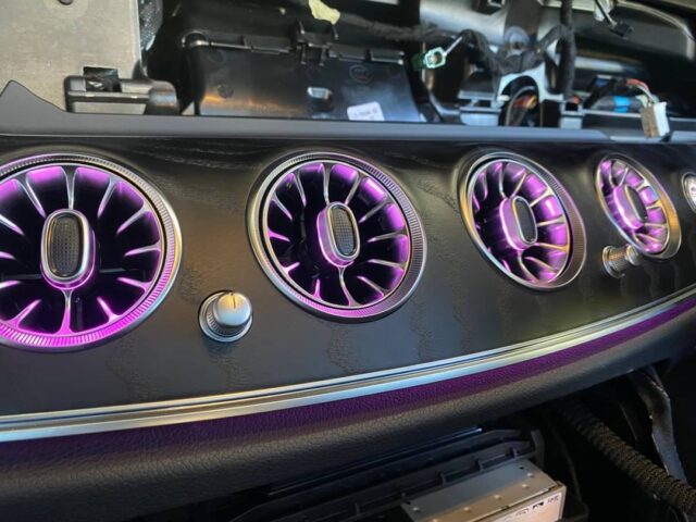 メルセデス・ベンツ E200 W213後期 前後アンビエント連動エアコン吹き出し口取付|3Dツイーター取付