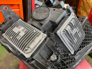 ヘッドライト裏のコントロールユニットを2つとも新しいヘッドライトに移植です