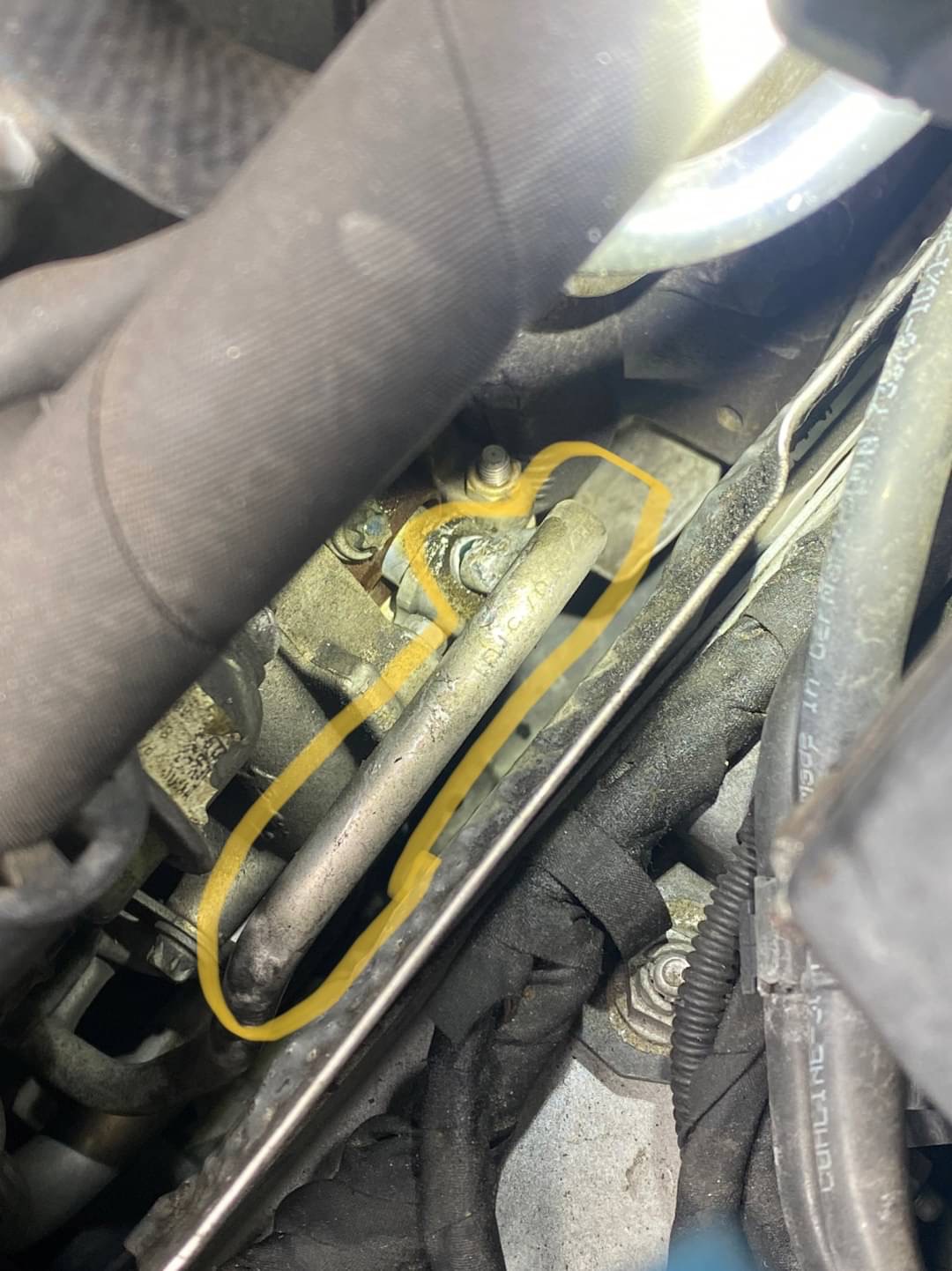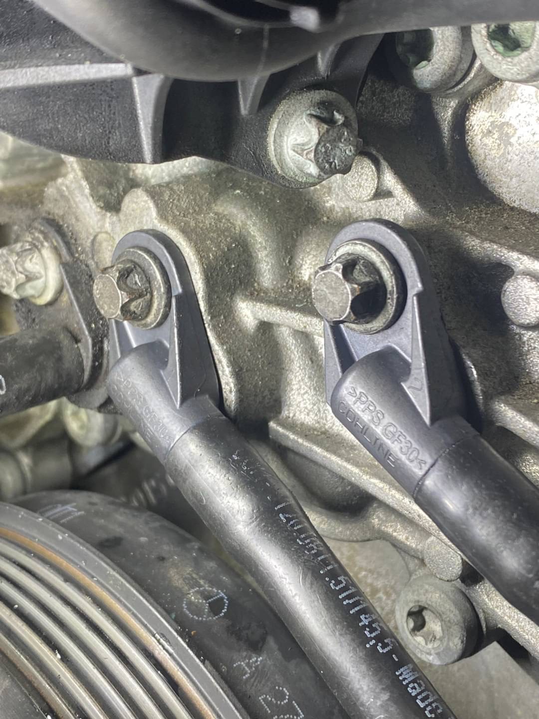 こちらのクーラントパイプを2本取り替えるだけの簡単な作業なんですが…