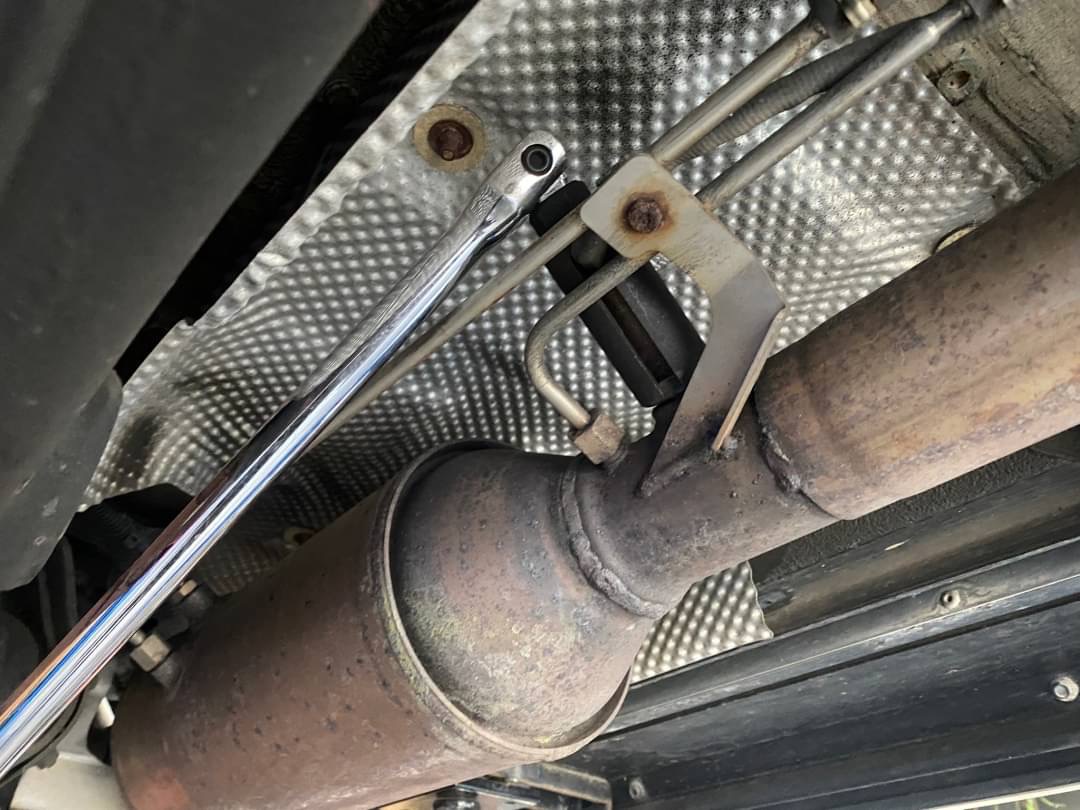 マフラーに刺さっている側のナットを外して