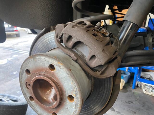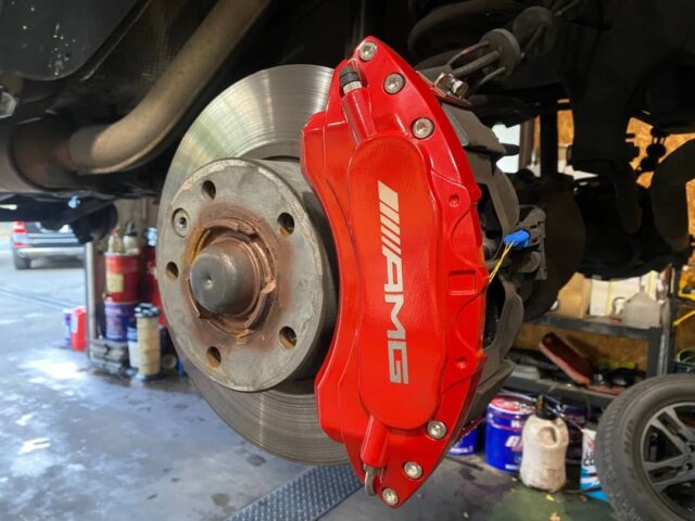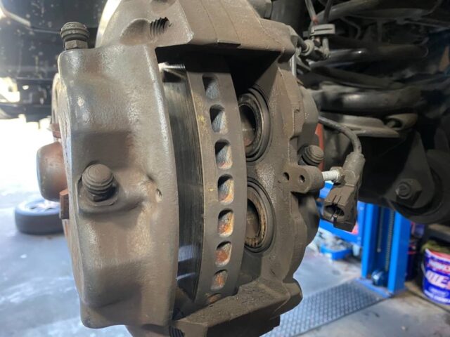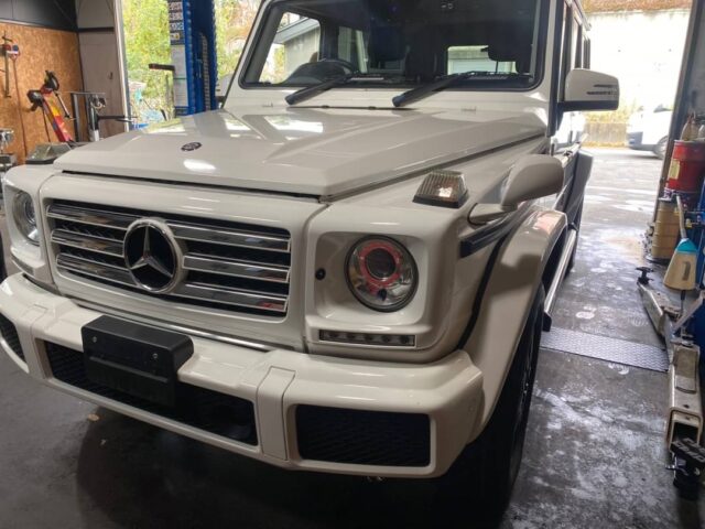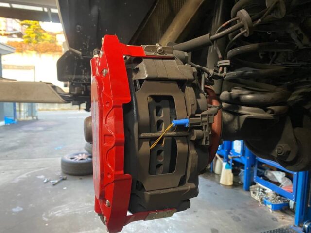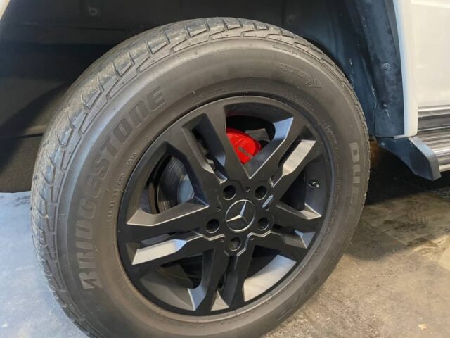 メルセデス・ベンツ G350d W463 前後低ダストブレーキパッド取付|キャリパーカバー取付