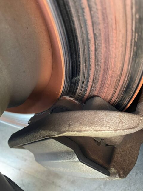 入庫時、右リアのブレーキが高温で焼けたようになっていました