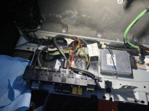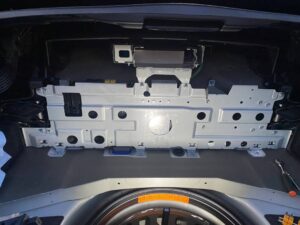 鉄板ごとめくるとやっとリアサムコントロールユニットが外れる状態に!