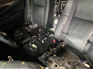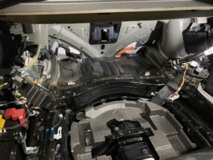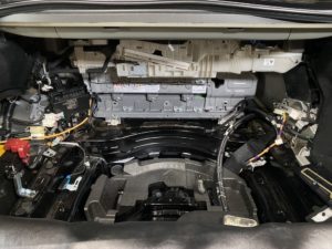早速トランク内張が外れてますが、奥にいるのがハイブリッドバッテリーです