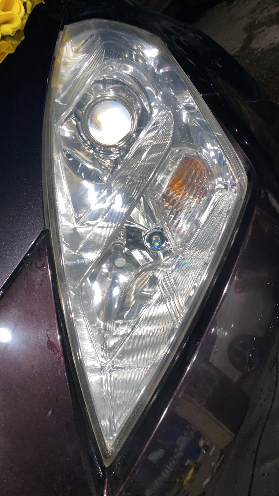 この画像はヘッドライトの黄ばみがまだ出るまだ出る状態になっているところですね。