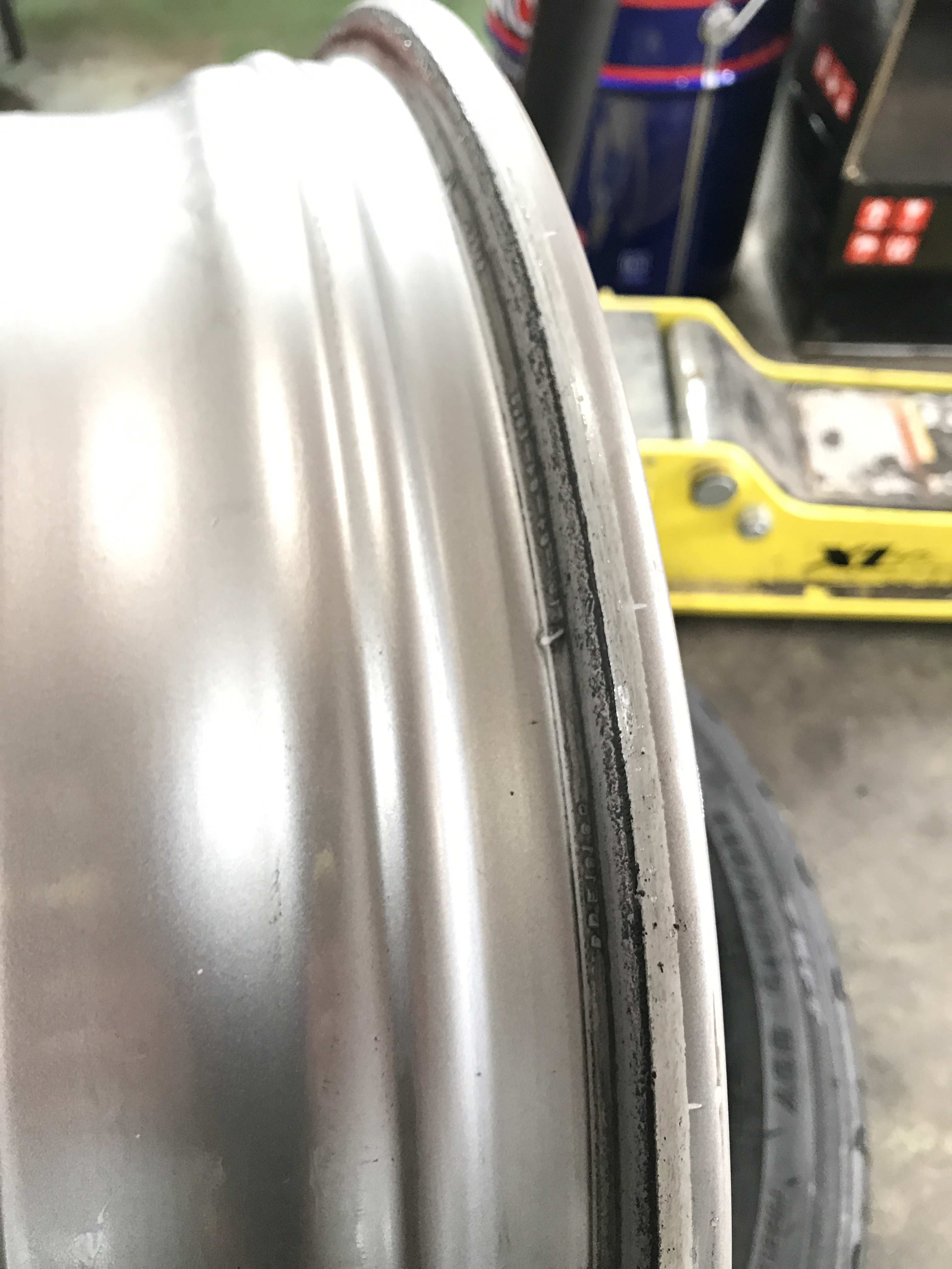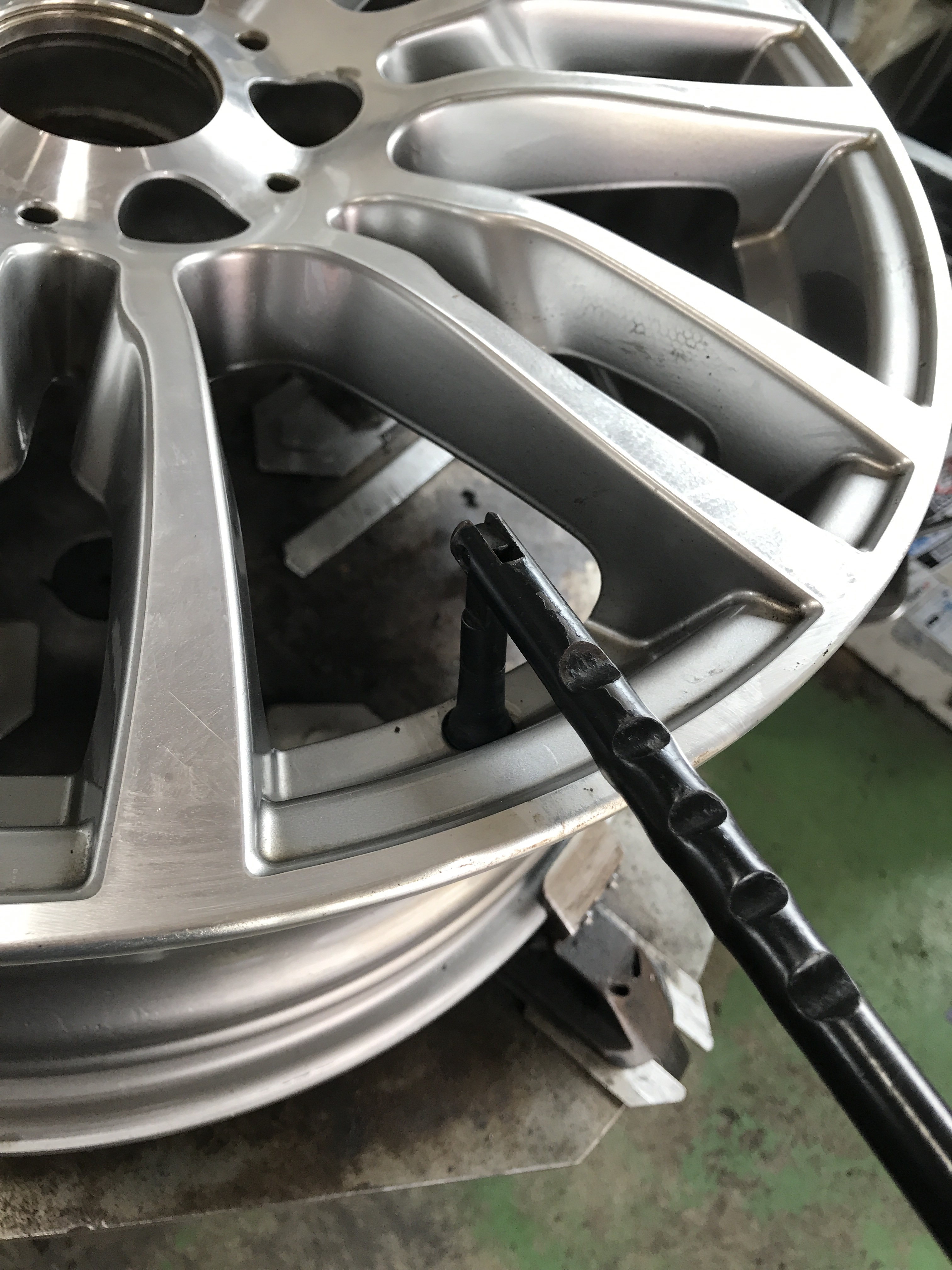 ホイールからタイヤを外して、ゴムのカスもしっかり取り除いていきます。