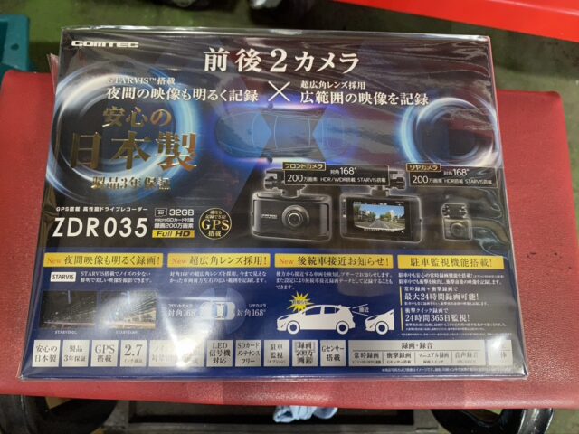 お客様持ち込みで、コムテック (ZDR035) 製を取り付けます