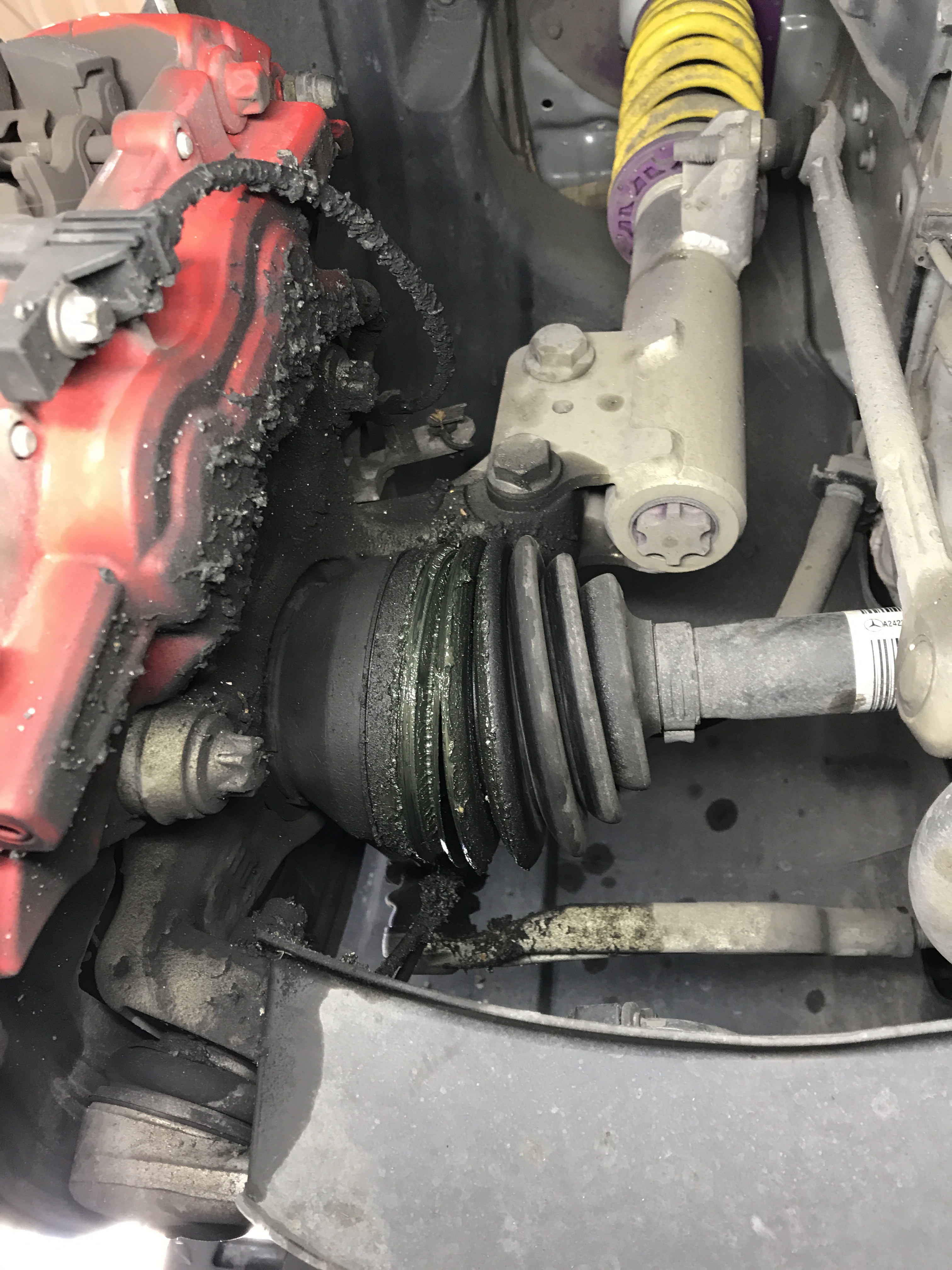 メルセデスベンツのW176型A45AMGのドライブシャフトブーツを交換させて頂きました。