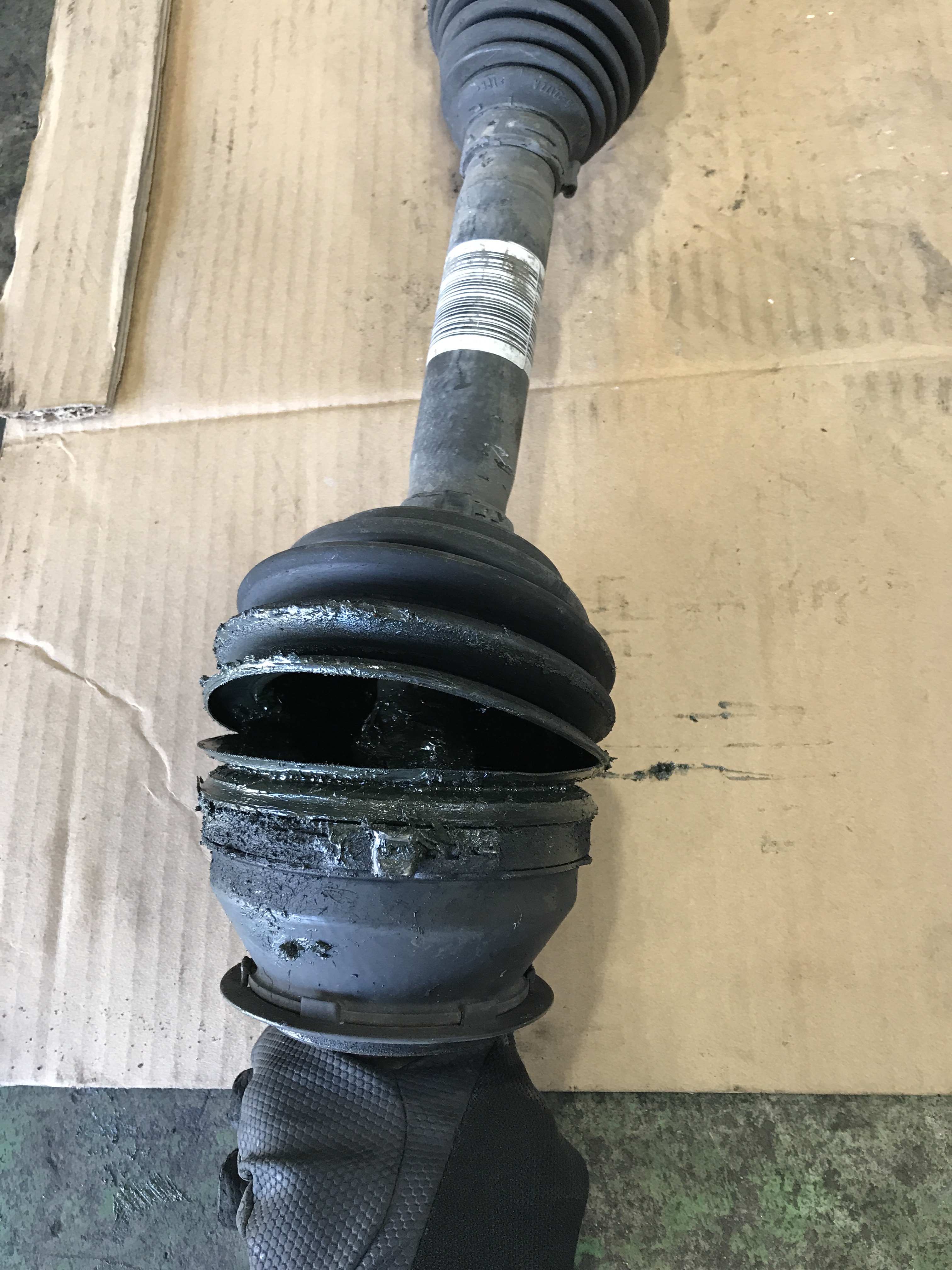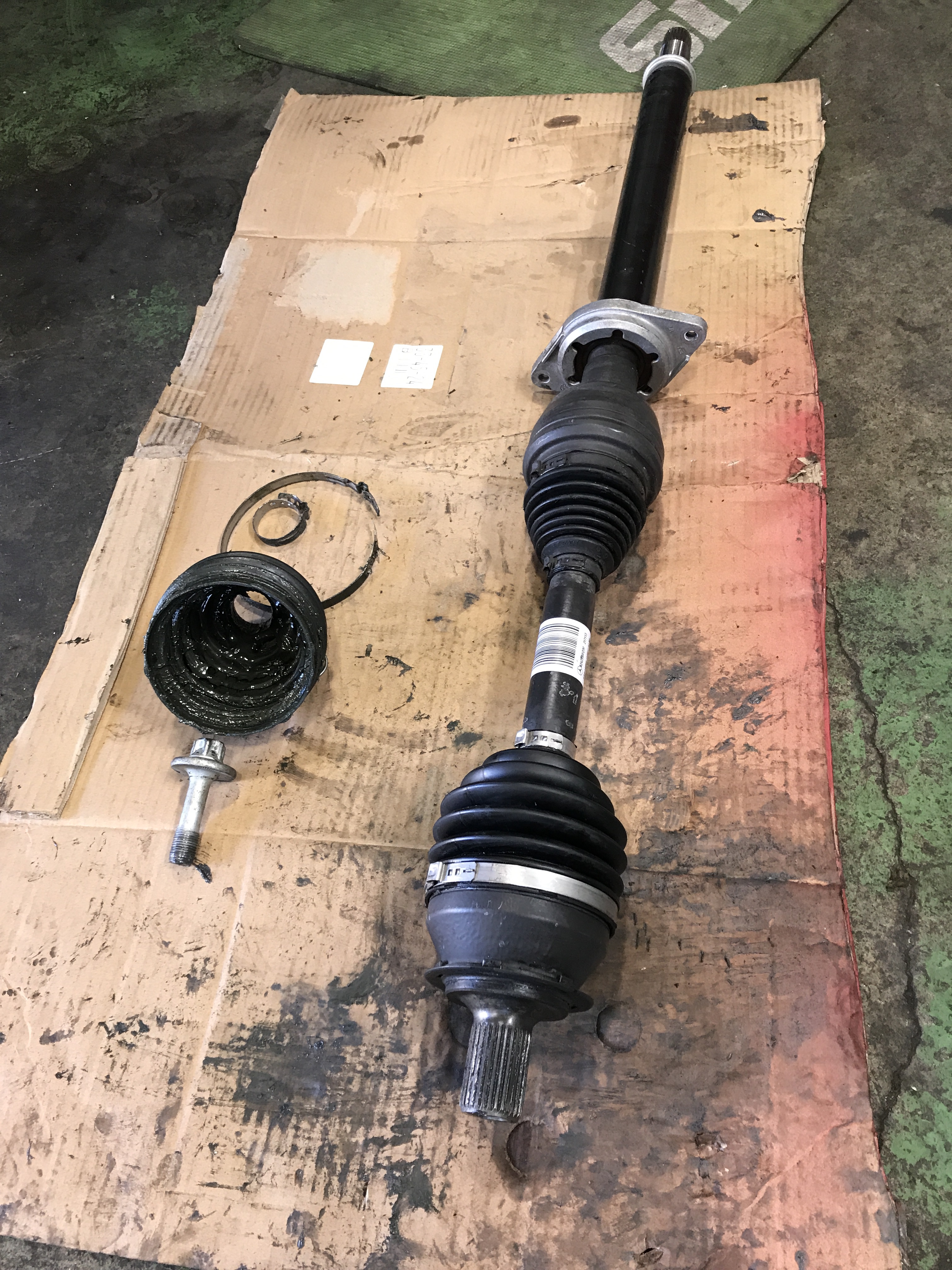 右のアウターのドライブシャフトブーツが破けていたので交換させて頂きました。