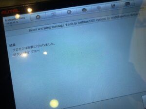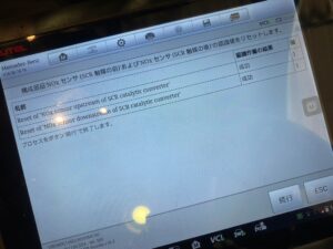 車両に診断機を接続し、システムの認識作業とエラーリセットを行います。これにより、システムが新しいヒーターを正しく認識し、エラーメッセージがクリアされることを確認します。