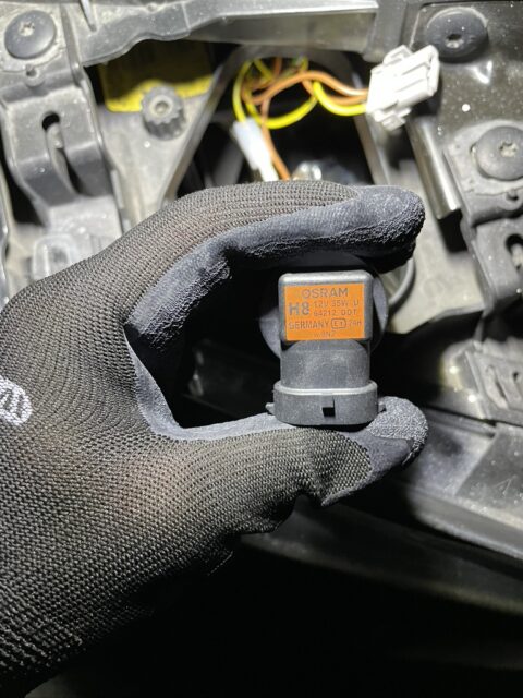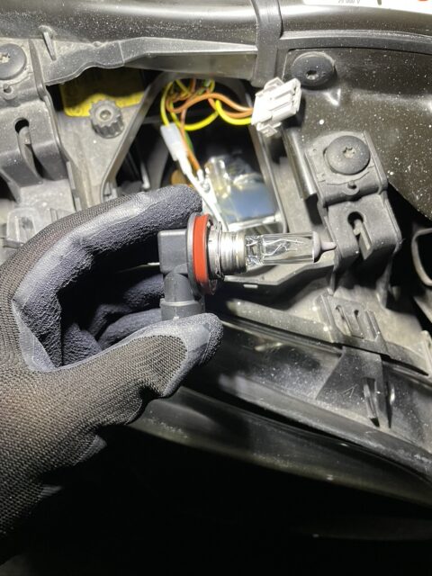 少し工程を飛ばしてしまいましたが、ボンネットを開きヘッドライトの上に付いてるカバーを外せばアクセス出来ます!(結構狭いですが、、、)