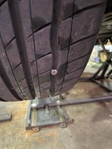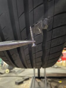 釘が刺さり空気が漏れている箇所に穴埋め剤を入れて穴を埋めます