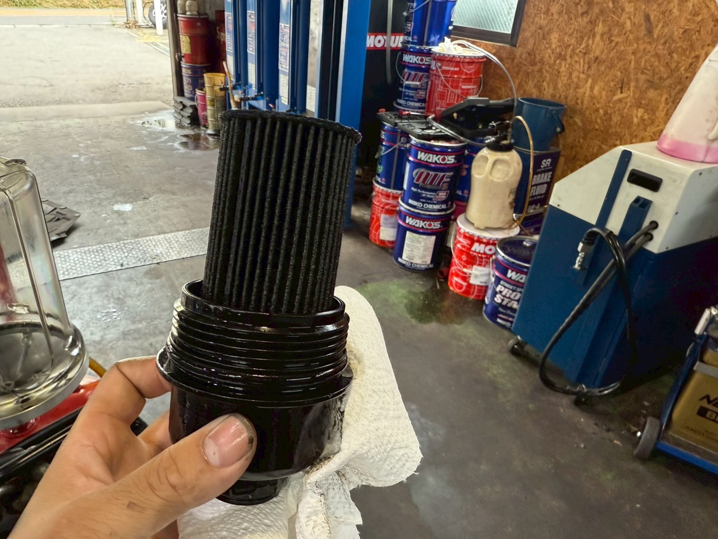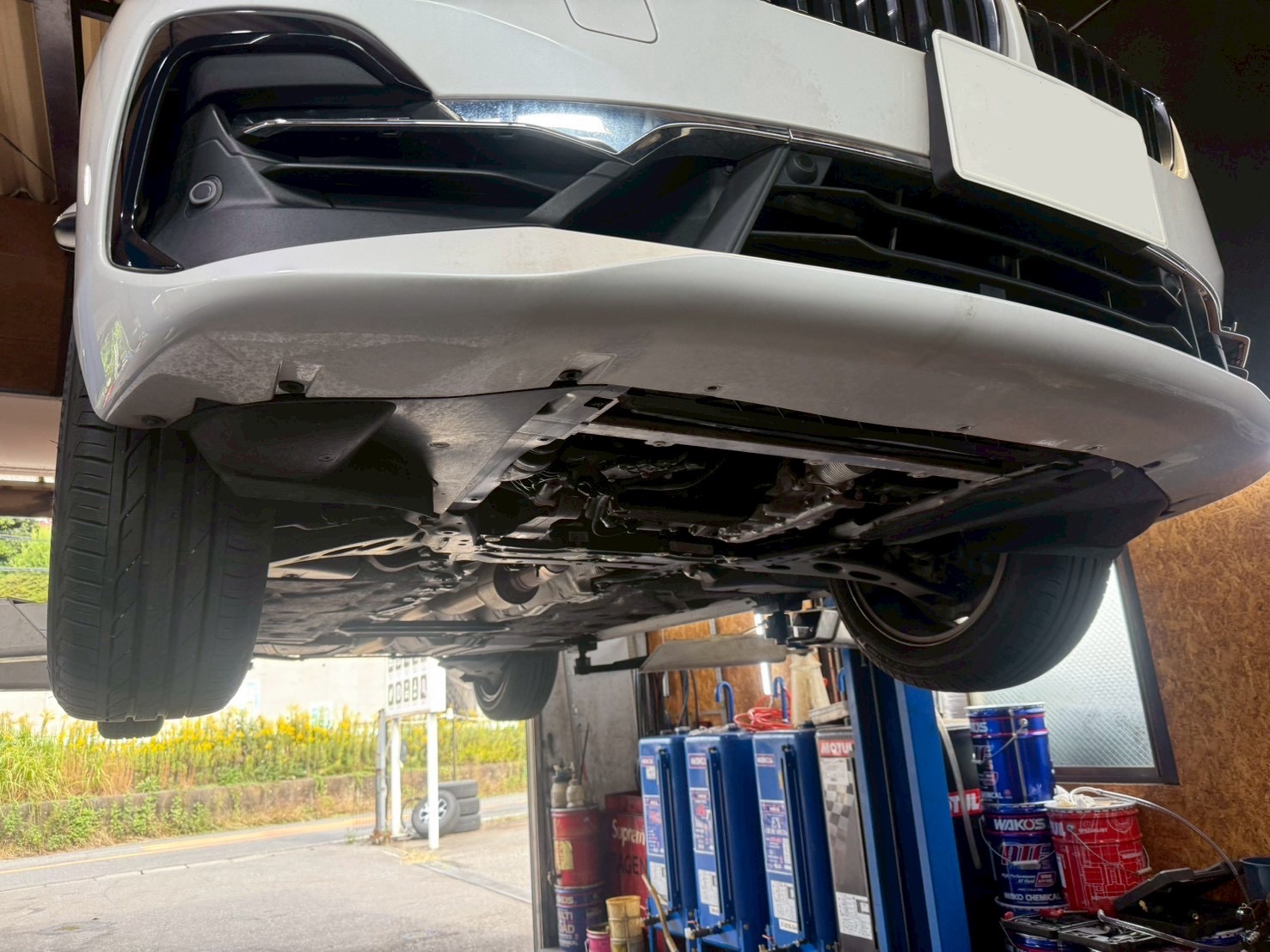 エンジンルーム・足回り・電気装置・ブレーキなど、全29項目の状態を確認します。点検が完了したら次はエンジンオイル・オイルフィルター交換を行います。