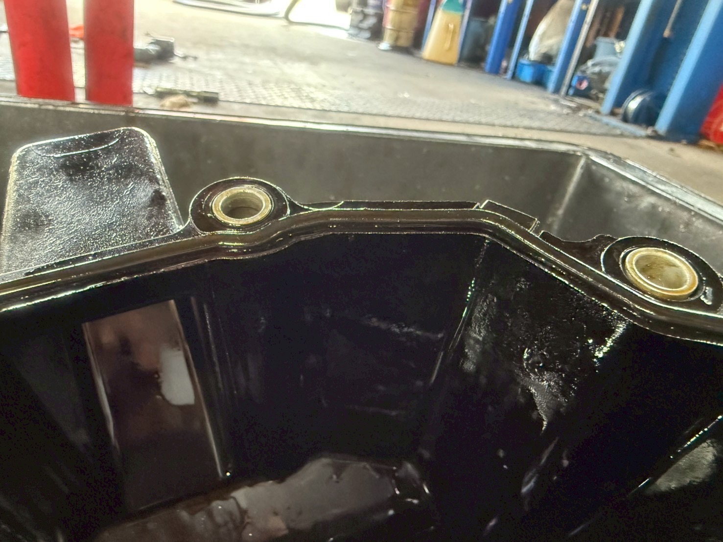 ガスケットを交換して、オイルパンも清掃したら完了です。逆の手順で組み付けます。