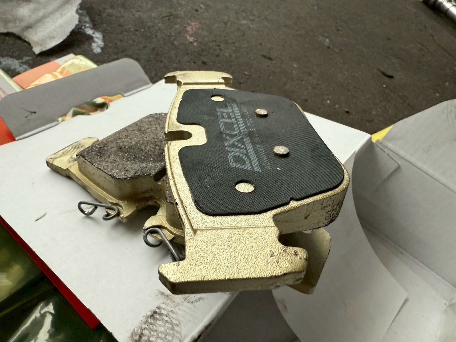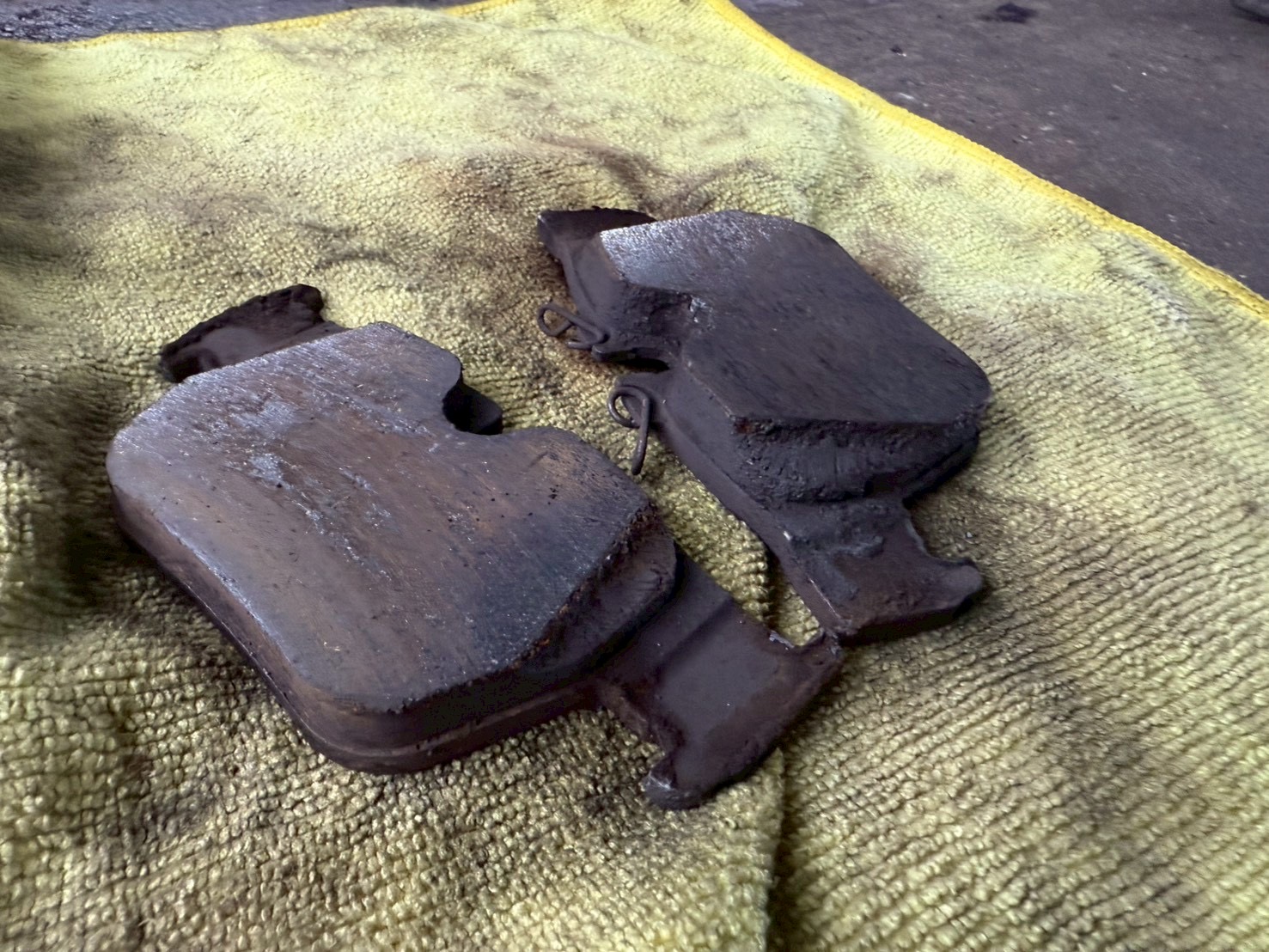 外れました。まだ残量はありますが、低ダストブレーキパッドへ交換します。