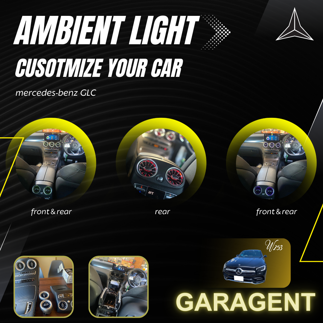 江戸川区にお住まいのS様より、ベンツGLC (W253後期)へのアンビエントライト連動エアコン吹き出し口の前後取付を依頼いただきました!この作業は、車内の雰囲気をさらに高め、夜間のドライブを一層楽しめるカスタムです🌟