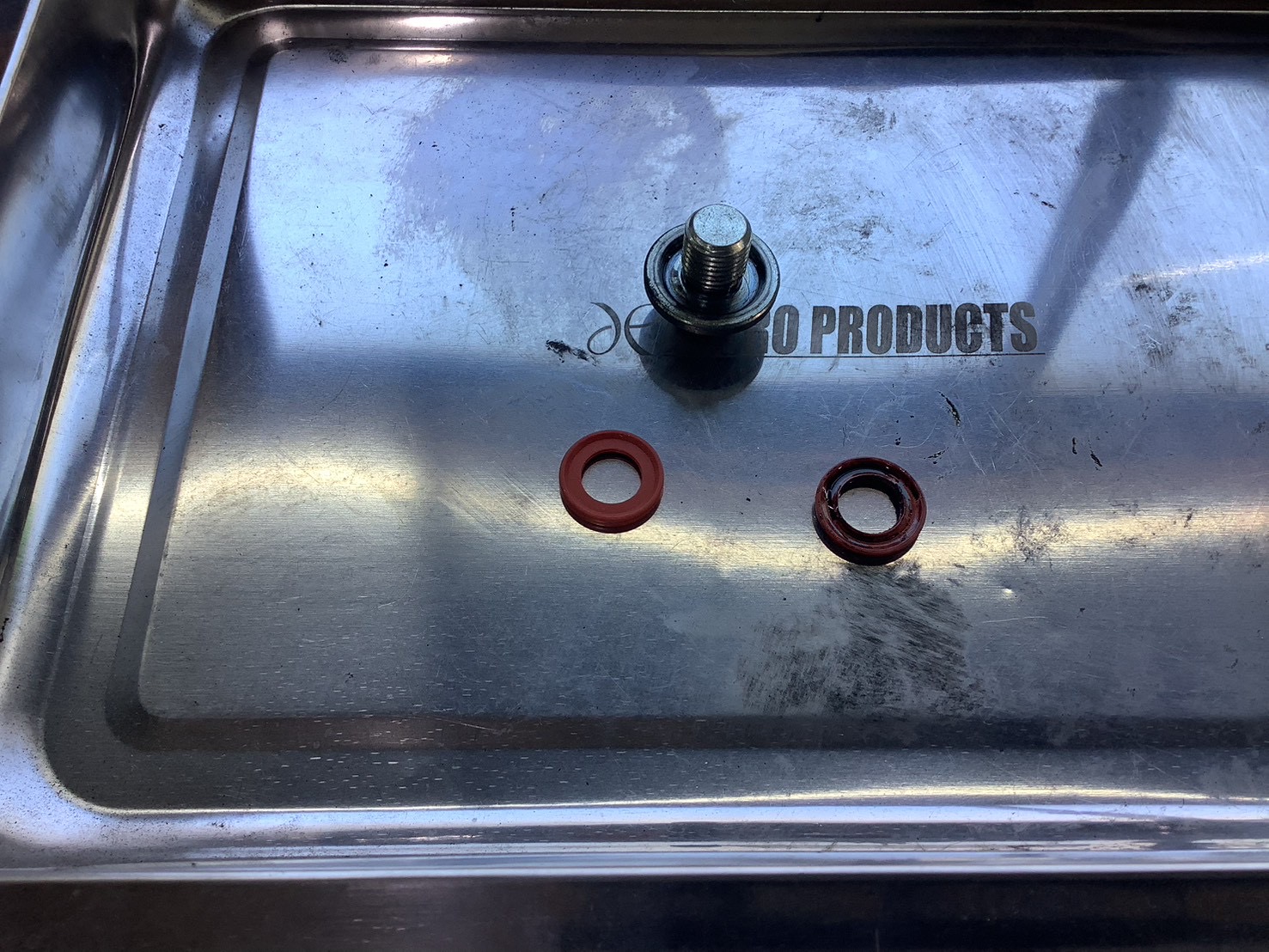 次にエンジンオイルを交換します。ドレンボルトを外してオイルを抜きます。