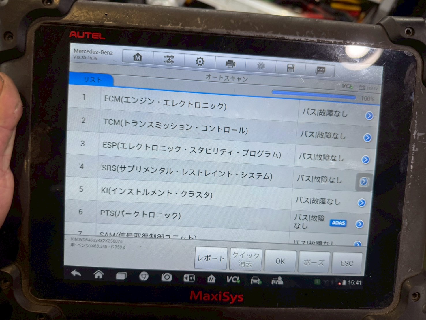 配線修理完了後、故障コードの確認/リセットを実施して完了です。
