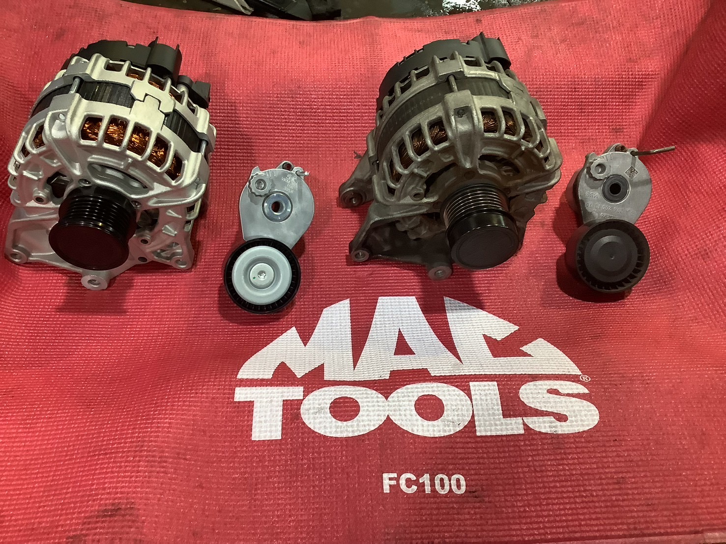 オルタネーター・ファンベルト・ベルトテンショナーを新しいものに交換します。(ファンベルトは撮り忘れ)