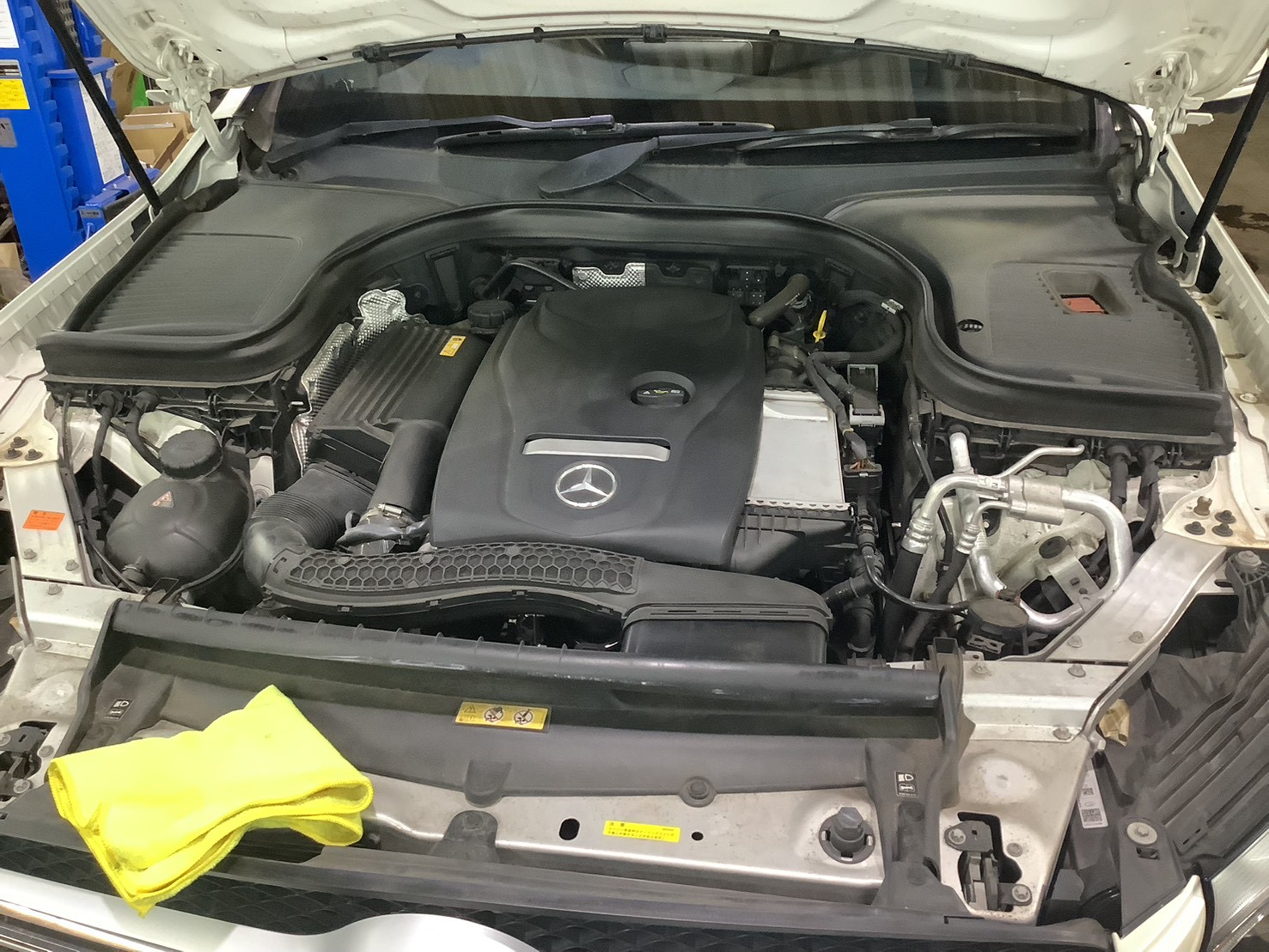 東京都東村山市よりご来店いただきましたメルセデス・ベンツ GLC X253のご紹介です。エンジンルームから異音がするとのことで点検を実施。オルタネーター・ファンベルト・ベルトテンショナーを交換させていただきました。