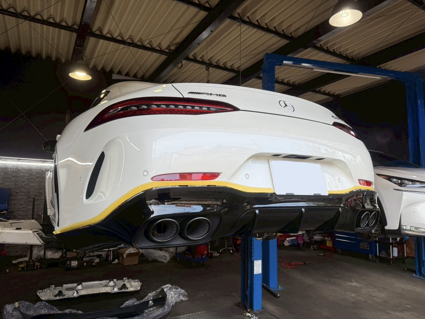 【実際の作業手順】メルセデス・ベンツ GT53 AMG X290のリアディフューザー ・ドアミラーカバーの交換