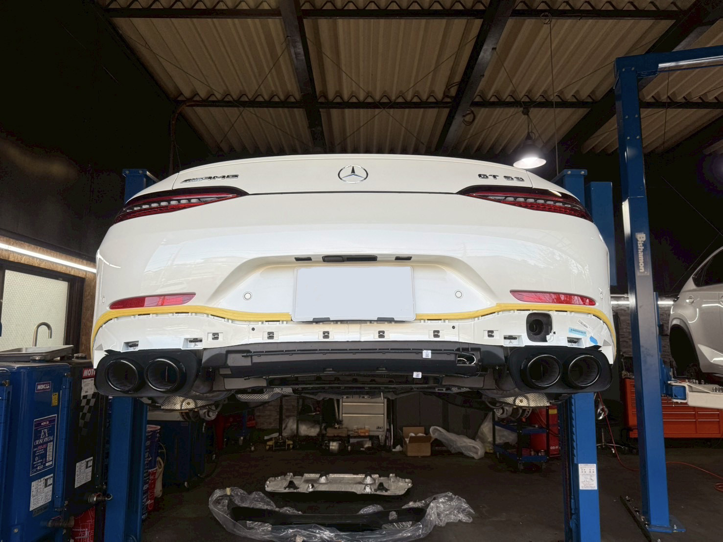 【メルセデス・ベンツ GT53 AMG X290】リアディフューザー ・ドアミラーカバーの交換とサイドスカートパネルの取り外し