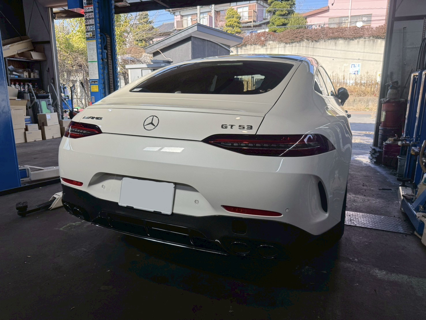 東京都国立市よりご来店いただきましたメルセデス・ベンツ GT53 AMG X290のご紹介です。リアディフューザー ・ドアミラーカバーの交換とサイドスカートパネルの取り外しを依頼していただきました今回は作業内容が多いので各パートに分けてご紹介します。