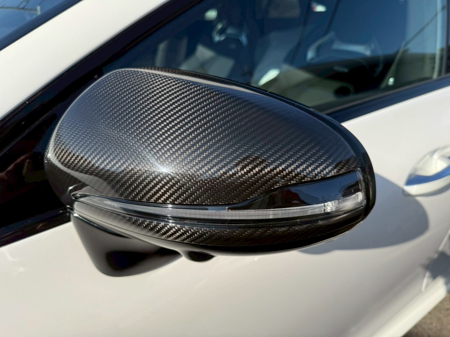 ミラーを割らないように慎重にドアミラーカバーも取り外し、カーボンの新品に交換します。