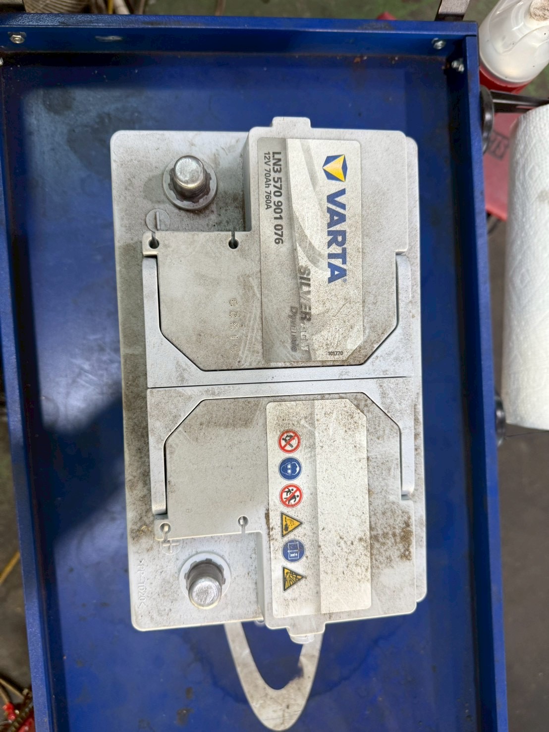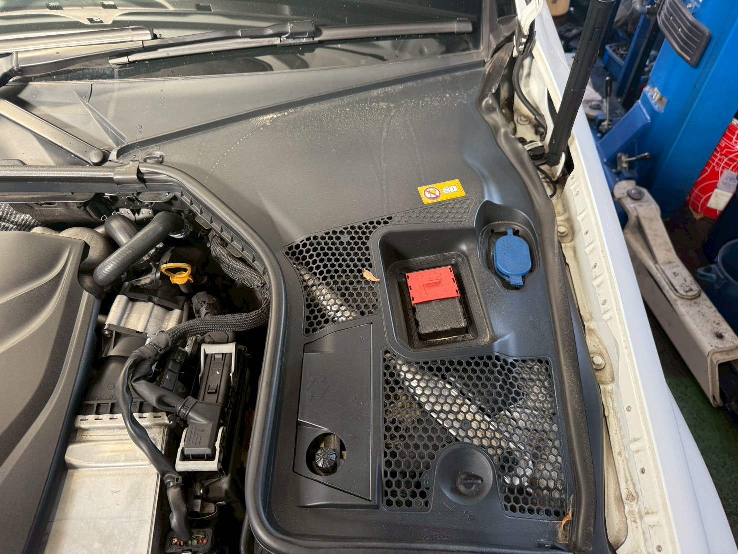 バックアップ電源を繋いだら、ボンネットを開けて作業開始です。