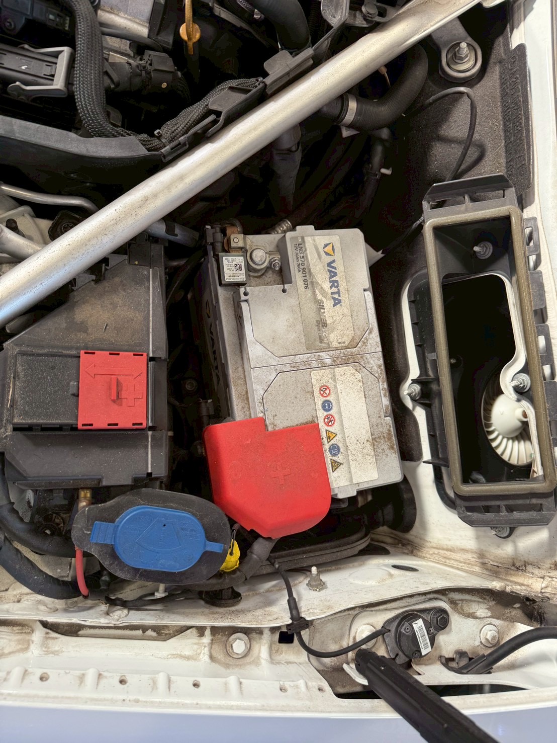 カバーやエアコンフィルターを外してバッテリーにアクセスします。
