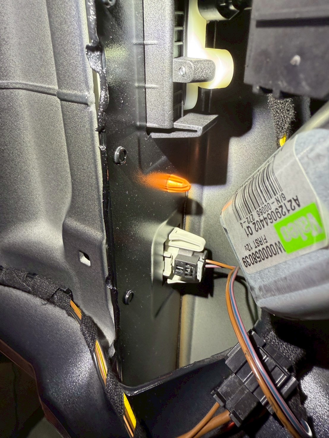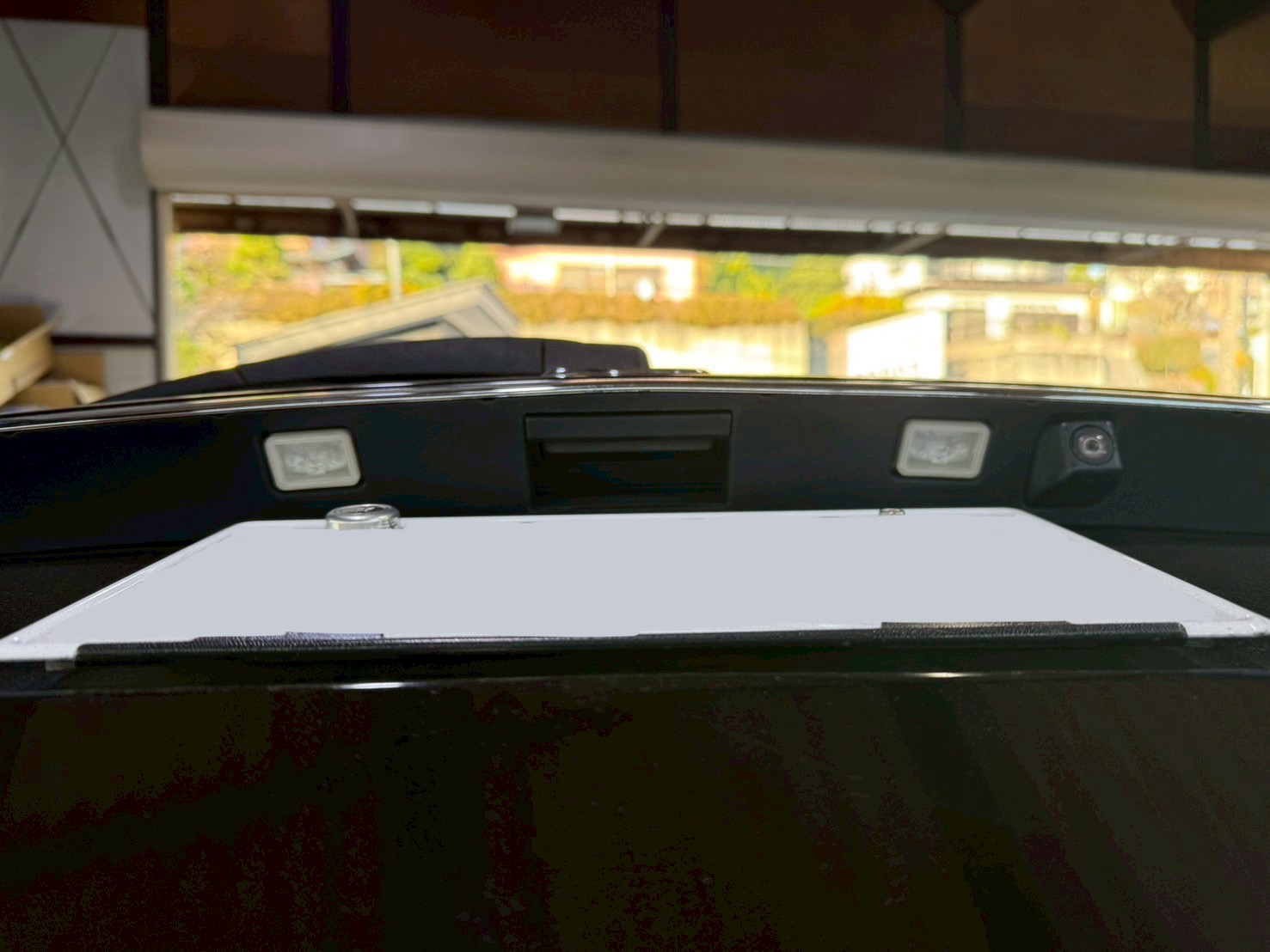 取り付けは逆の手順です。ライセンスランプを取り付けてコネクターを挿し、内張とカバーを戻します。点灯を確認して完了です。