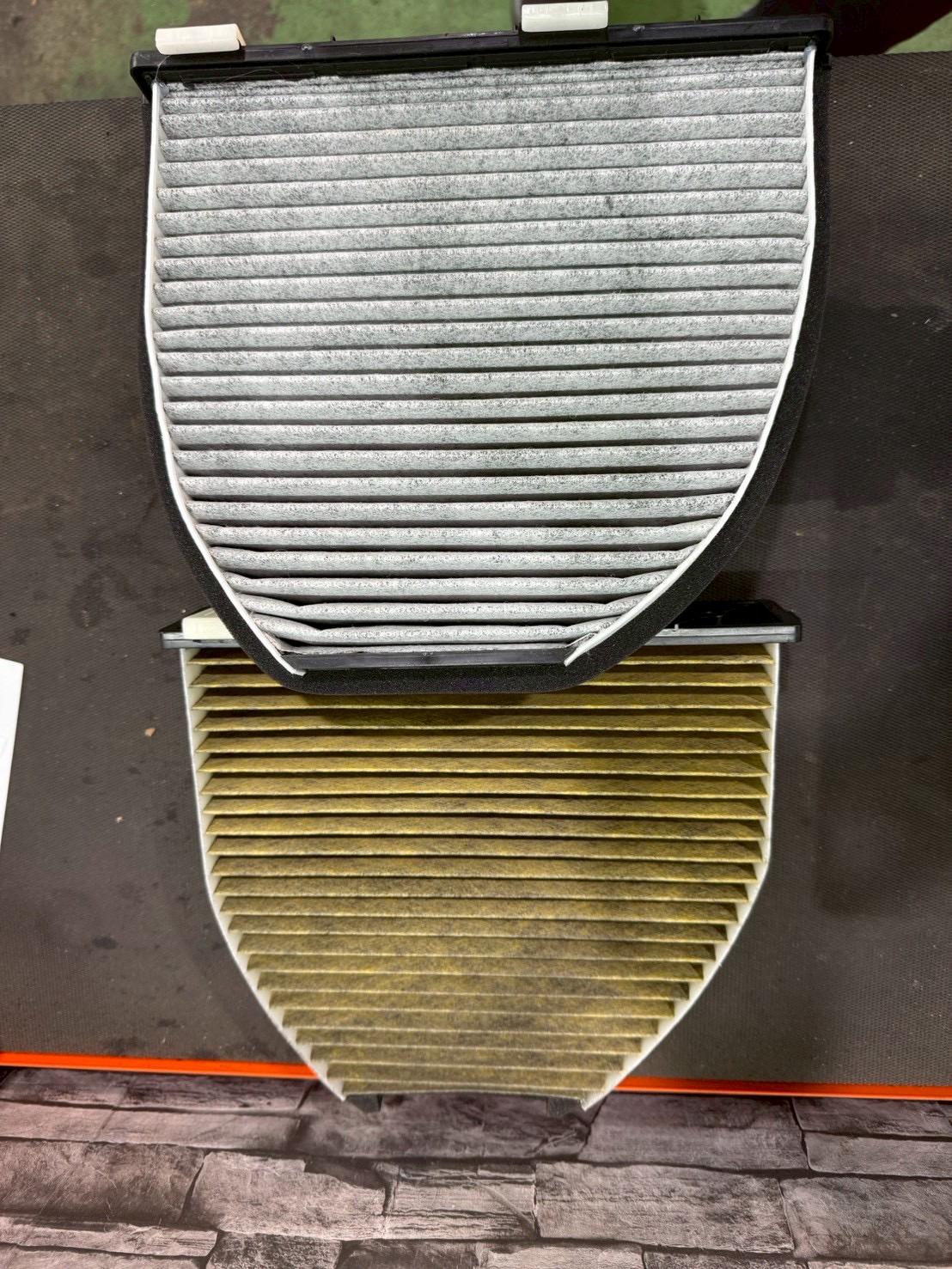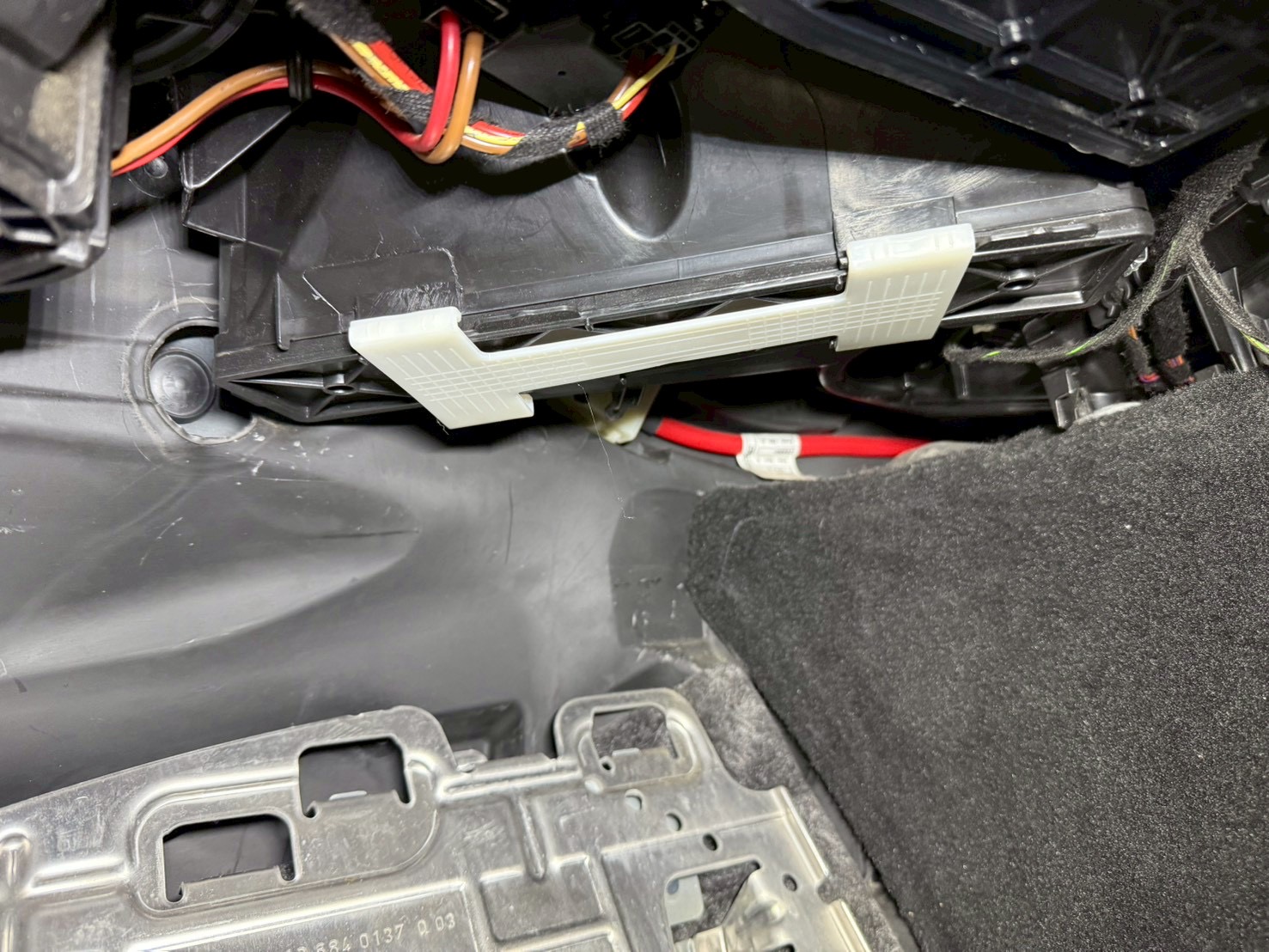 次にエアコンフィルターを交換します。グローブボックス下のカバーとコネクターを外すと、フィルターが見えます。