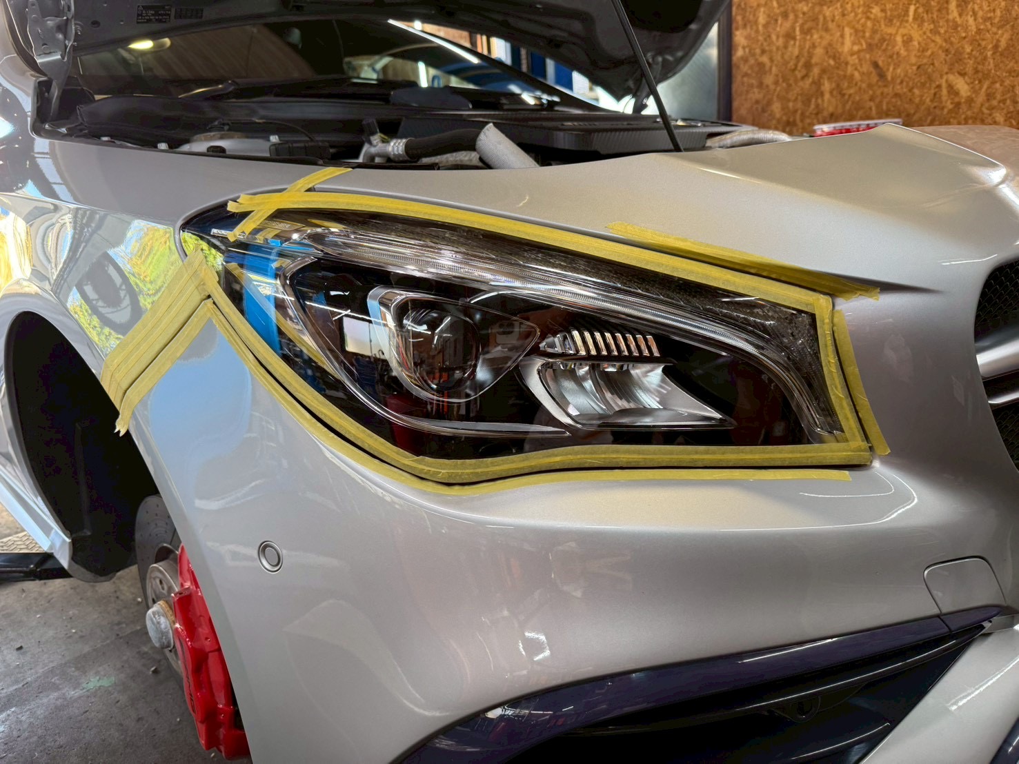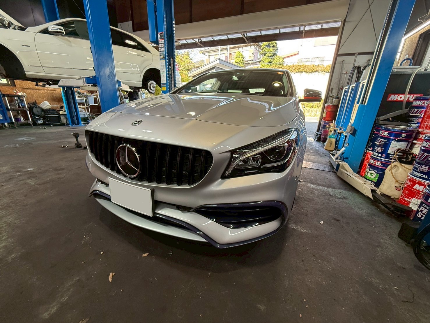 東京都江東区よりご来店いただきましたメルセデス・ベンツ W117 CLA45 AMGのご紹介です。パナメリカーナグリルへの交換と、それに合わせてグリルメッシュの取り付けを依頼していただきました。パナメリカーナグリルはお客様の持ち込みです。