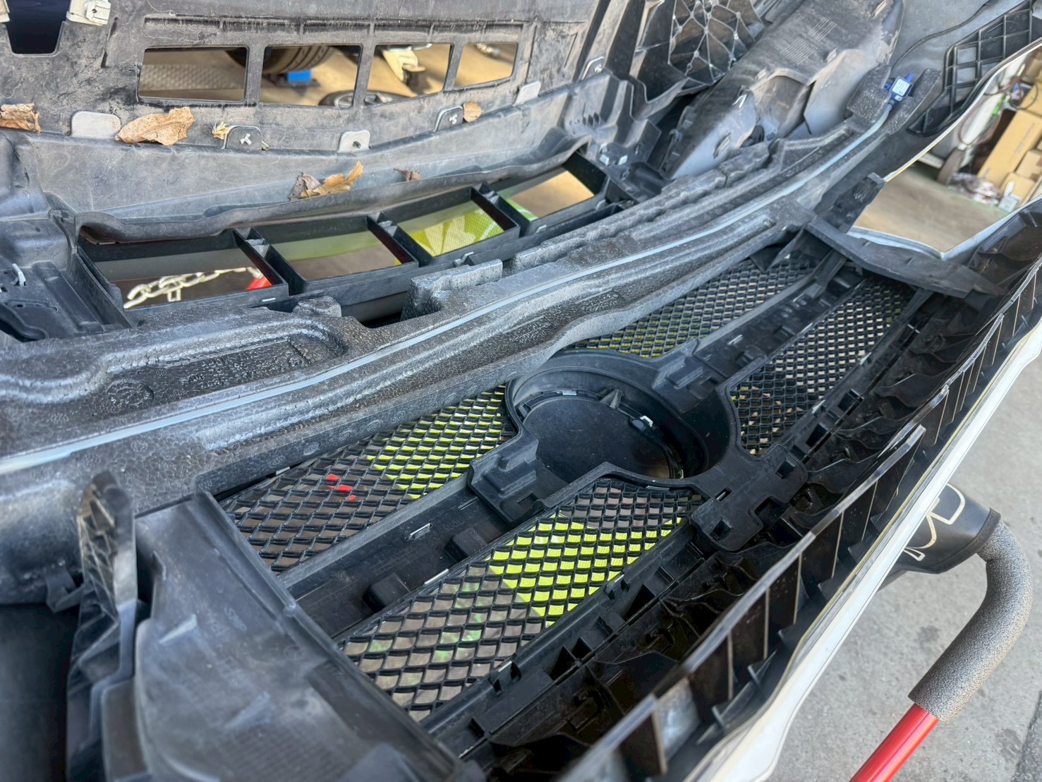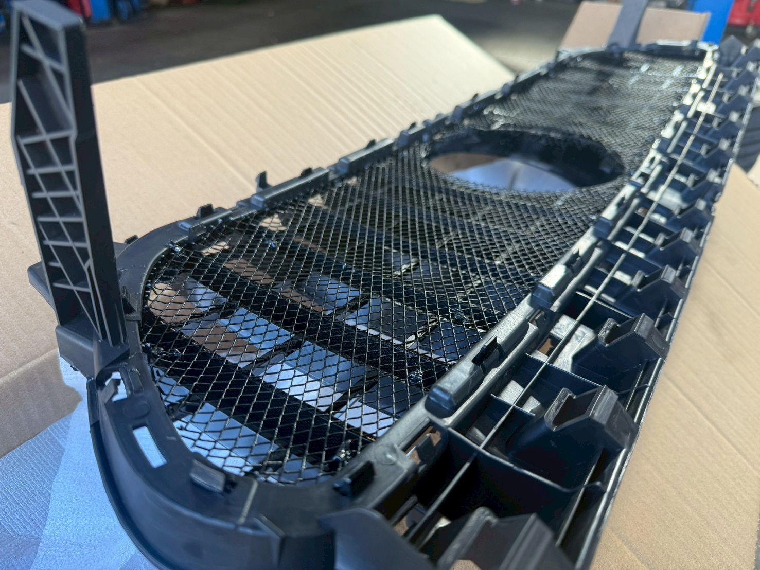 元のグリルが外れたらパナメリカーナグリルを取り付けますが、その前にメッシュを加工します。