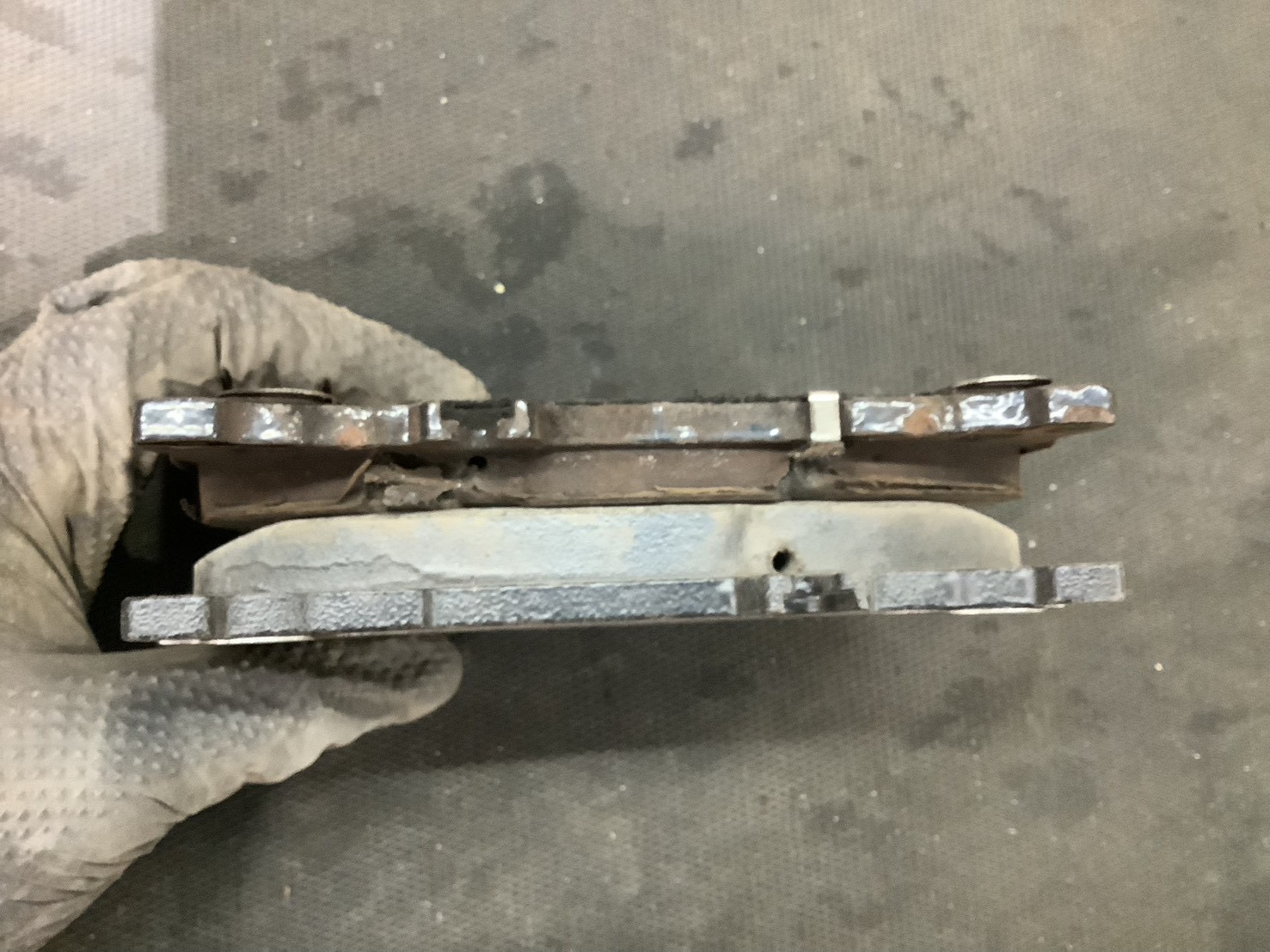 次にキャリパーとブレーキパッドを外します。ブレーキパッドは劣化による交換ではなく、ダスト対策として低ダストブレーキパッドへの交換です。