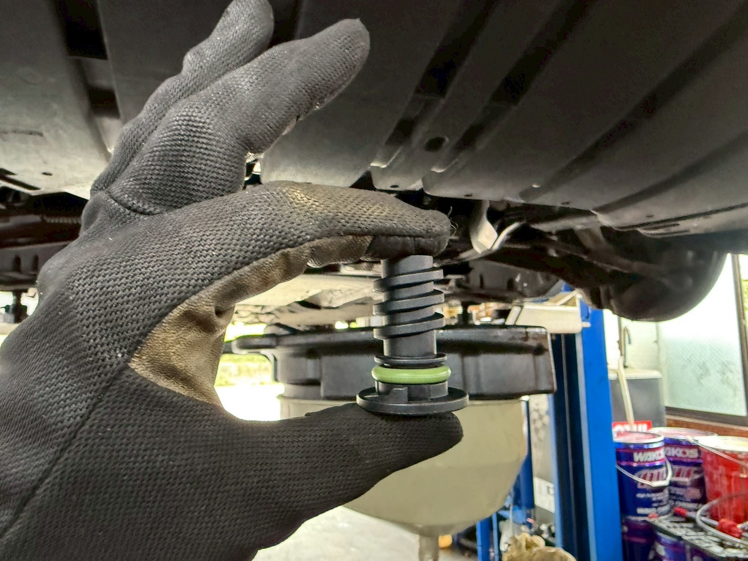 樹脂製のドレンボルトも交換して新しいエンジンオイルを入れたら完了です。
