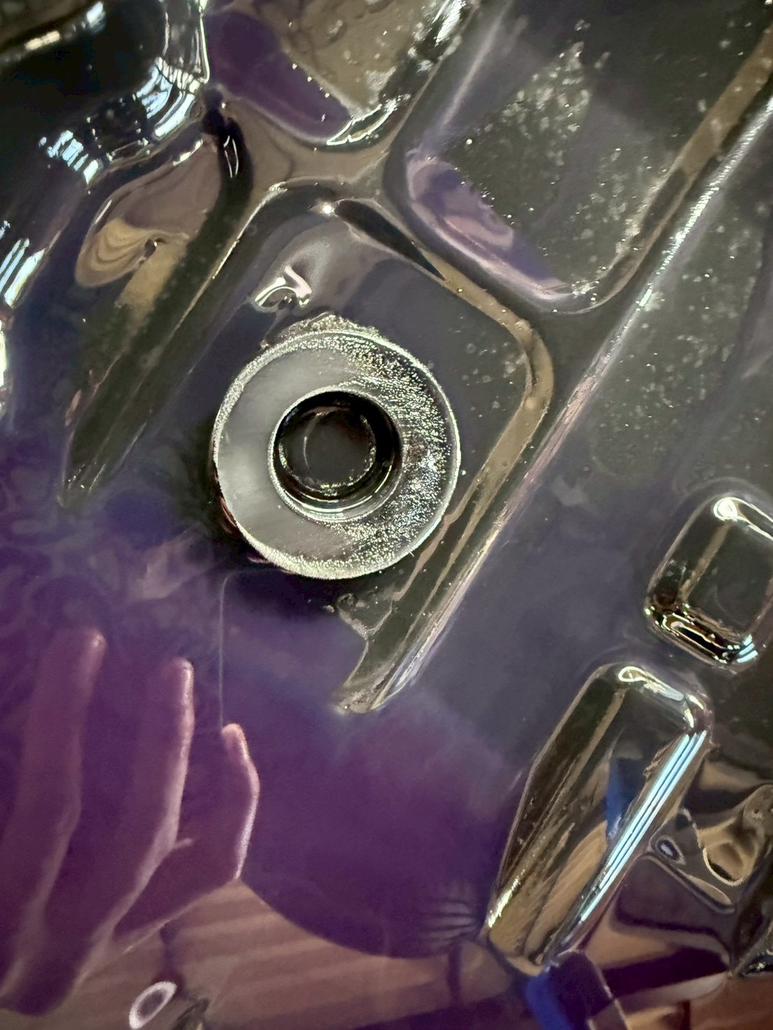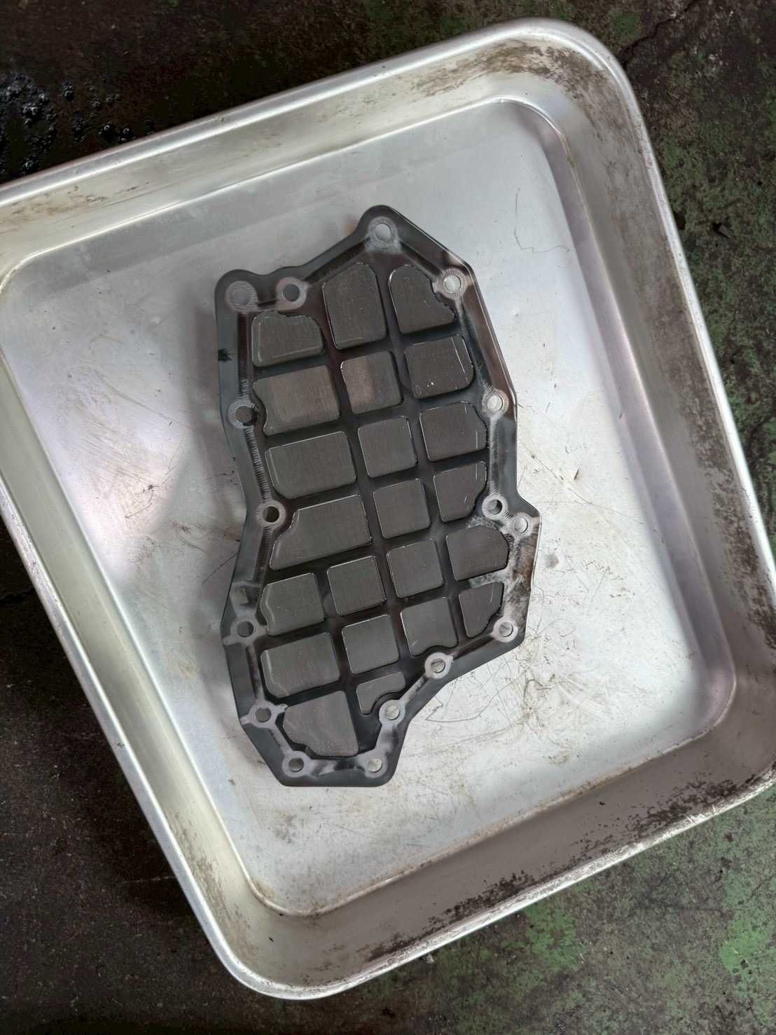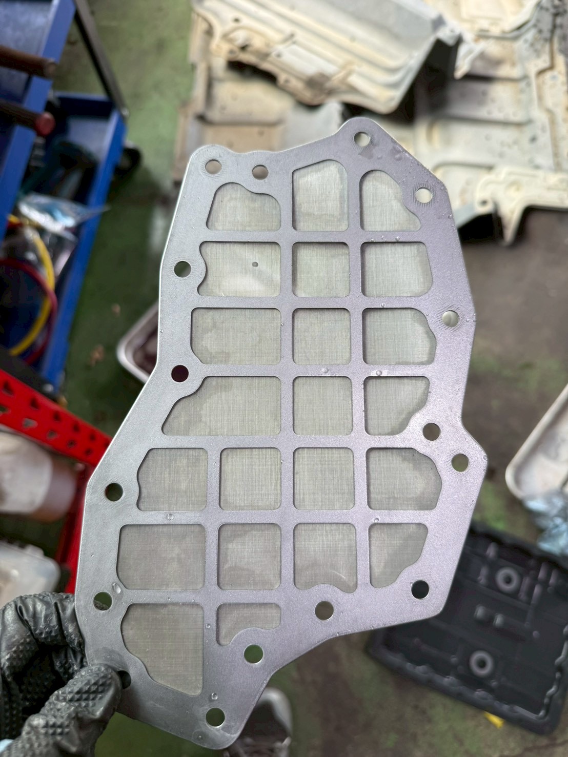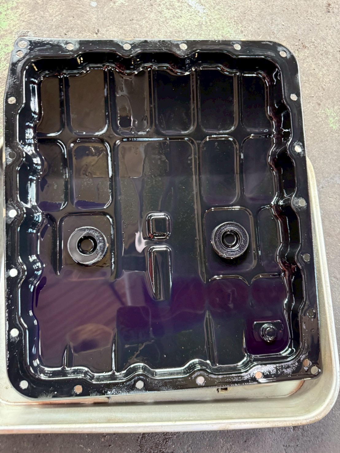 オイルパンを洗浄するとこんなに綺麗になります。特にマグネットの部分はシルバー色に元通り!