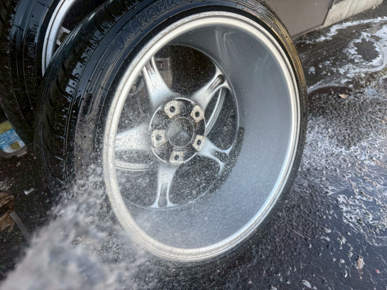 オイルが綺麗になったら完了です。ホイールを戻す前に洗浄します。