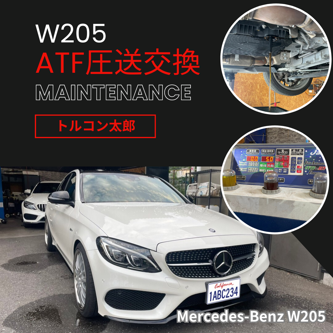 相模原にお住いのI様より、メルセデス・ベンツW205のトルコン太郎を使用したATF(オートマチックトランスミッションフルード)の圧送交換のご依頼をいただきました。走行距離も増え、ATFの劣化が気になるとのことで、交換を希望されています。