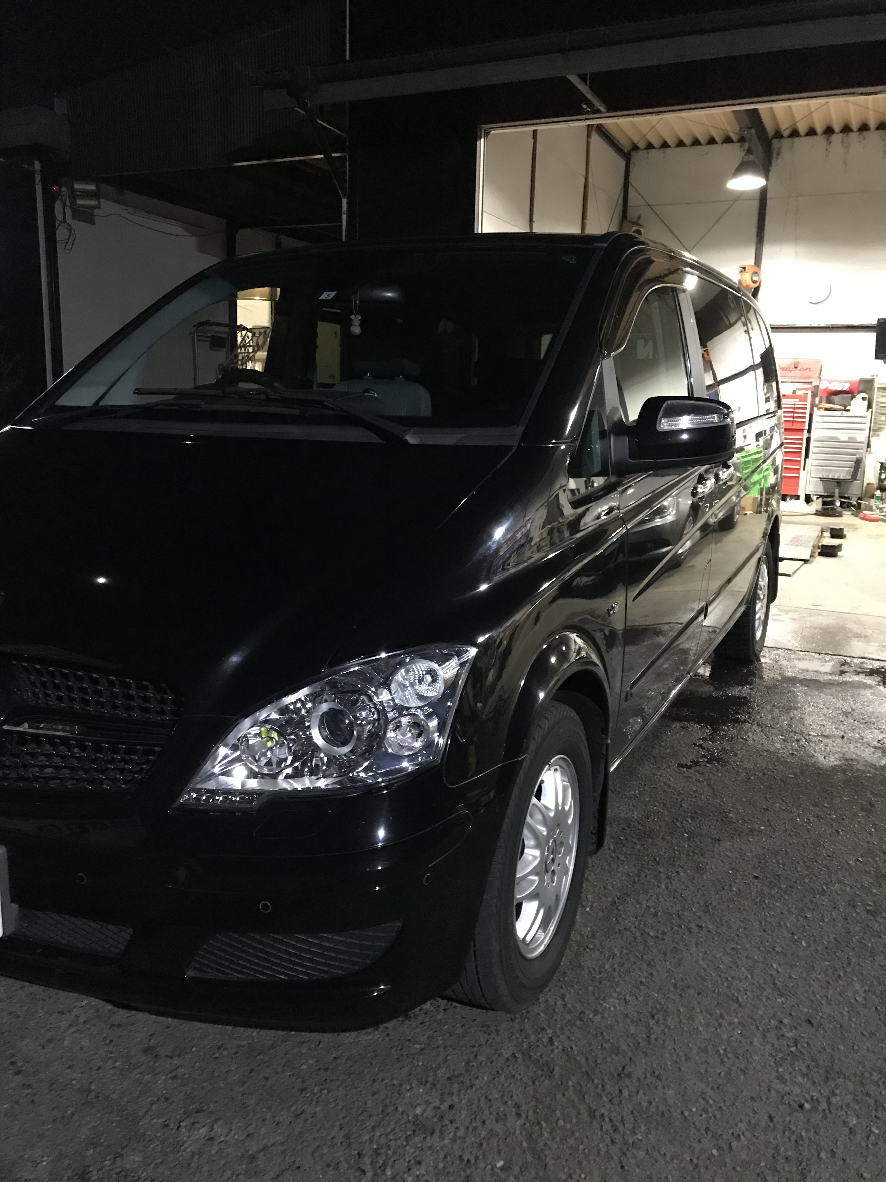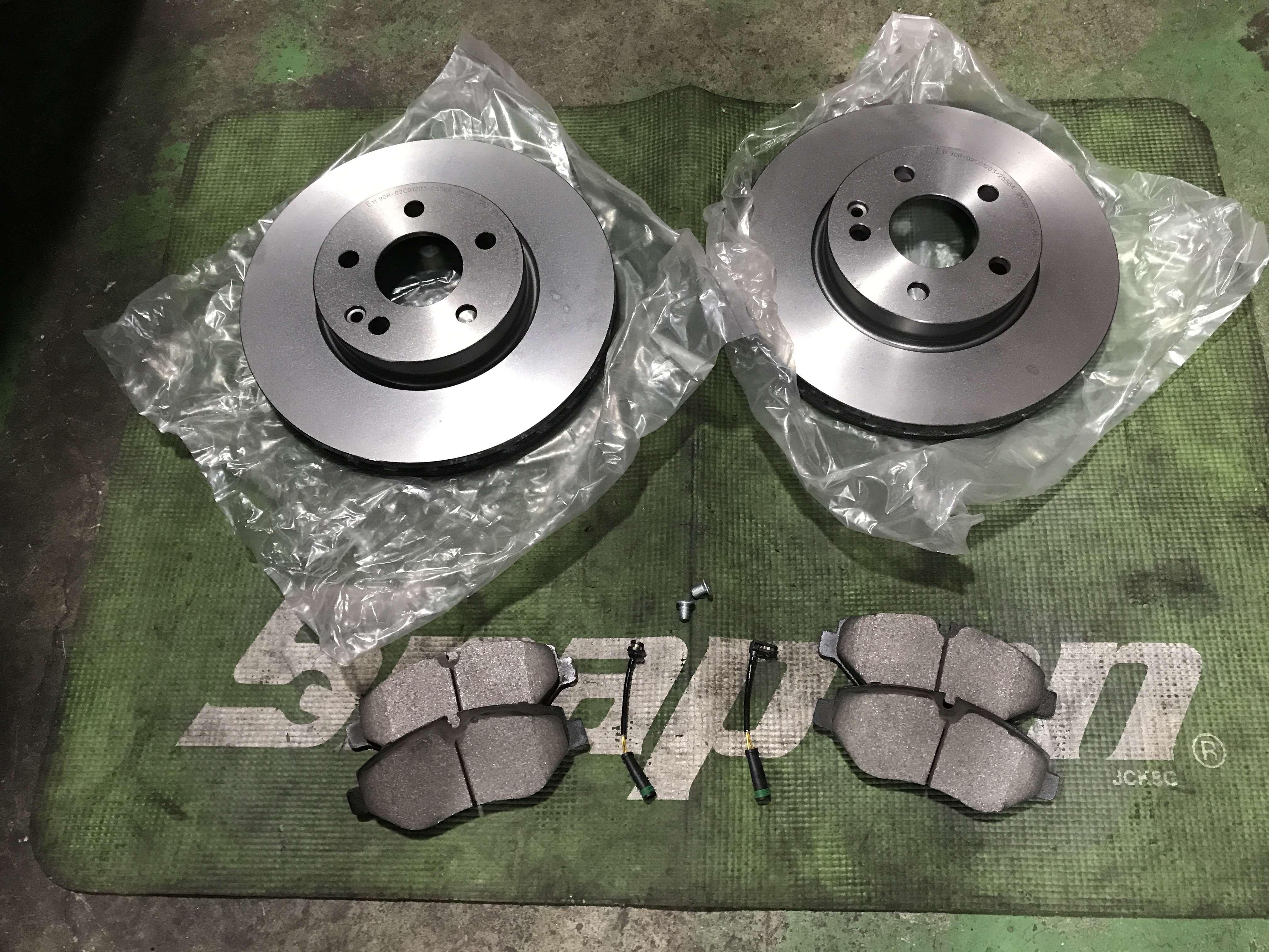 メルセデスベンツのW639型のVクラスに持ち込みのフロントブレーキパッドとブレーキディスクの交換をさせて頂きました。