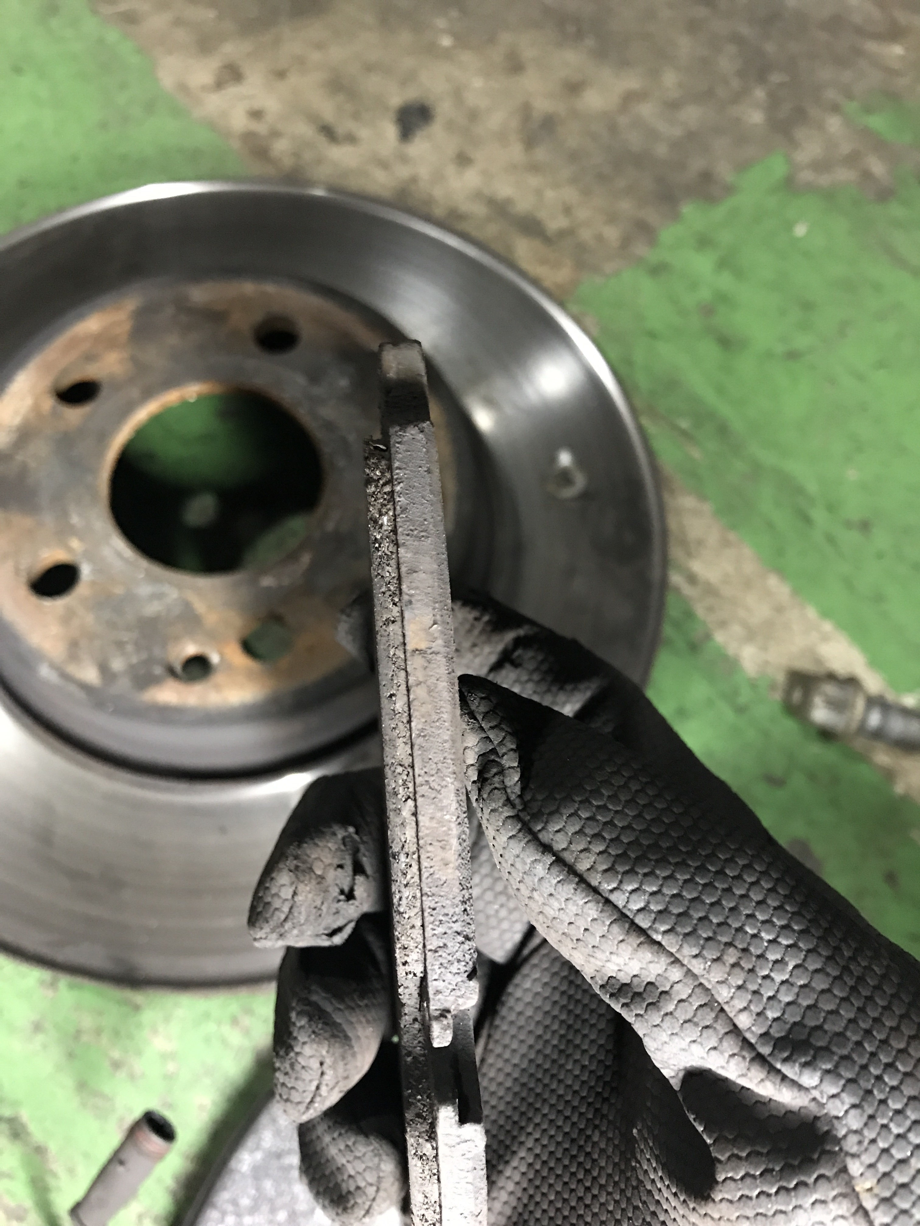 ブレーキパッドの厚みはだいぶ薄くなっていました。