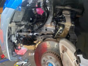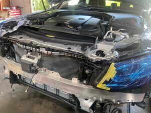 グリル交換にはまずフロントバンパーを外す必要があります。慎重にクリップやボルトを外し、バンパーを取り外します。