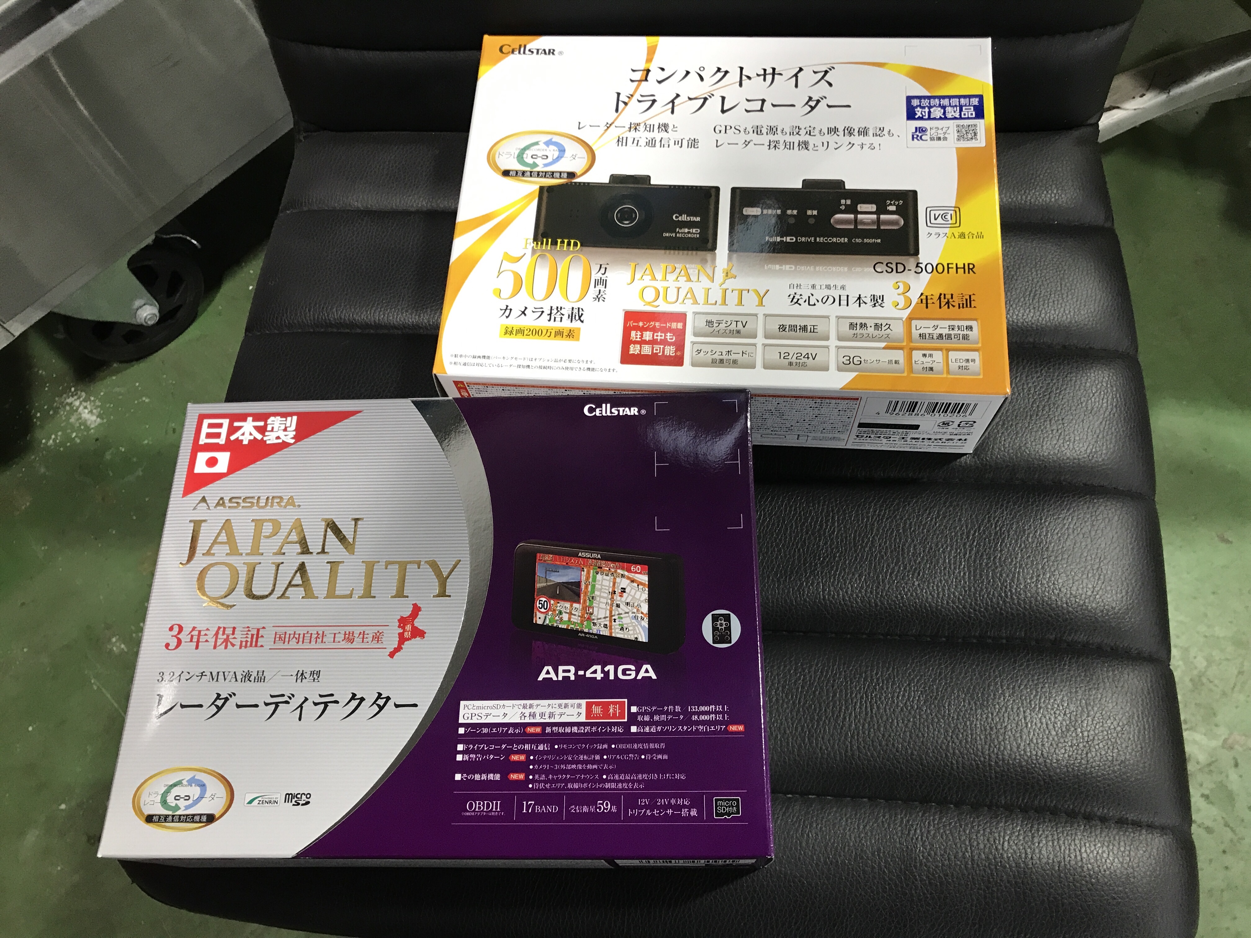 今回取り付けさせて頂いたのが、セルスターのレーダーAR-41GAとドライブレコーダーCSD-500FHRになります。