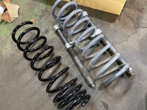 2. 旧ダウンサスの取り外し: 前オーナーが装着していたダウンサスを慎重に取り外しました。