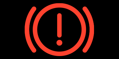 | ブレーキ液が不足し、赤色のブレーキ警告灯が点灯。警告音も鳴る。 ブレーキ性能が低下し、最悪の場合ブレーキが効かなくなる可能性がある。 対処法 ただちに安全な場所へ停車し、走行を続けないようにしてください。車両が動かないように固定し、メルセデス・ベンツ指定サービス工場に連絡してください マルチファンクションディスプレイの指示に従ってください。 ※ブレーキ液を補給しても問題は解決しません。 |